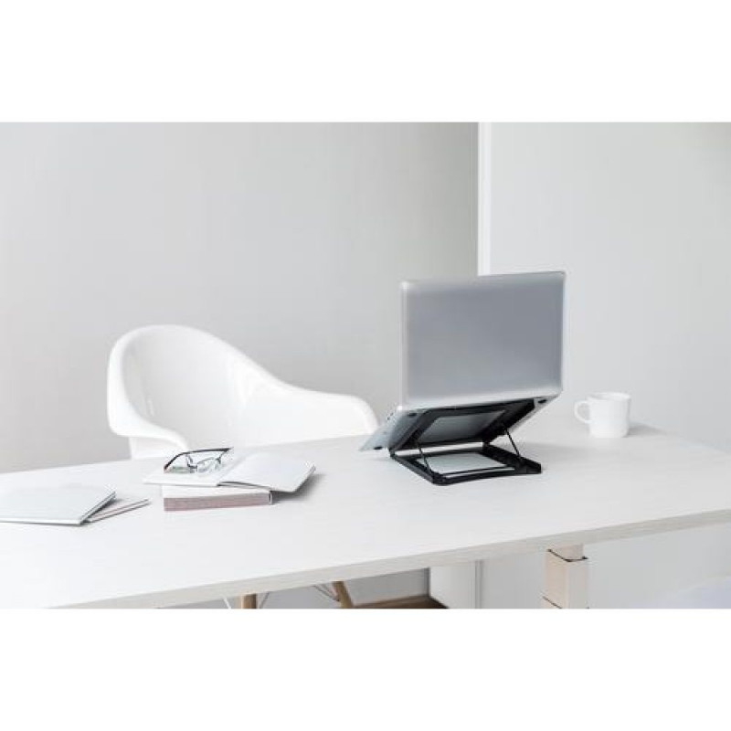 Mobile laptop stand, foldable and adjustable in 5 different steps (angles).<br><br>- For laptops from 10” to 15”<br>- Foldable and space-saving storage<br>- Adjustable in 5 different angles<br>- Optimal ventilation through the open frame construction<br>- Load capacity up to 5 kg<br><br>The mobile laptop stand from DIGITUS® requires little space on your home desk thanks to its slim design. Create an ergonomically perfect workplace for your laptop in just a few steps. The angle of the stand is easily adjustable in 5 steps, allowing the adaptation to any type of laptop or table height. Protect your equipment with open frame construction, which ensures optimal ventilation. Approved for laptops up to 5 kg.Digitus Mobile laptop stand. Product type: Laptop stand, Product colour: Black, Material: Metal. Width: 255 mm, Depth: 35 mm, Height: 255 mm. Package width: 240 mm, Package depth: 235 mm, Package volume: 2143.2 cm³