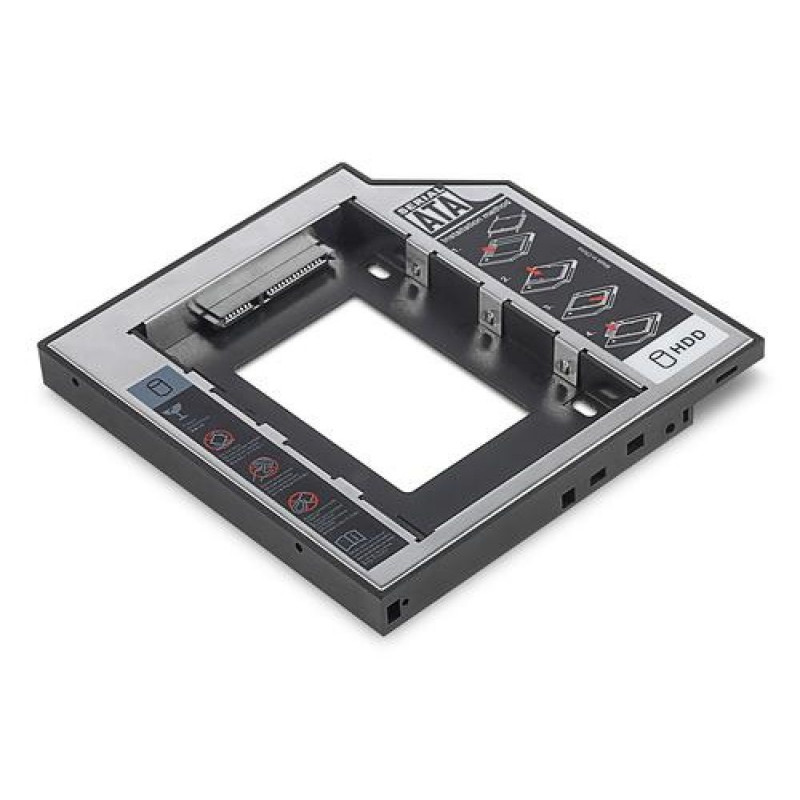The perfect solution for simply upgrading the memory of your notebook<br><br>- Mounting frame for 2.5" SATA hard disks (HDD) and SSDs<br>- Suitable for almost all SATA drive bays with an installation height of 12.7 mm<br>- Universally designed aperture holder enables individual, optical adjustment<br>- Manufacturer diagnostic PIN<br><br>The DIGITUS® SSD/HDD mounting frame for the CD/DVD/Blu-ray drive slot is the perfect solution for upgrading your notebook. With this frame you can replace the optical drive (CD/DVD/Blu-ray) by a hard disk. Provide the frame with the original drive aperture and the exchange remains externally unremarkable. The frame corresponds to a shaft height of 12.7 mm and is designed for 2.5" SATA SSDs and HDDs. The DIGITUS® SSD/HDD mounting frame for the CD / DVD / Blu-ray drive slot is used in almost all optical drive bays with SATA interface. It serves the memory expansion through the use of a hard drive / SSD and allows faster access to your data it contains.Digitus SSD/HDD Installation Frame for CD/DVD/Blu-ray drive slot, SATA to SATA III, 12.7 mm installation height. Product colour: Black, Grey, Country of origin: China