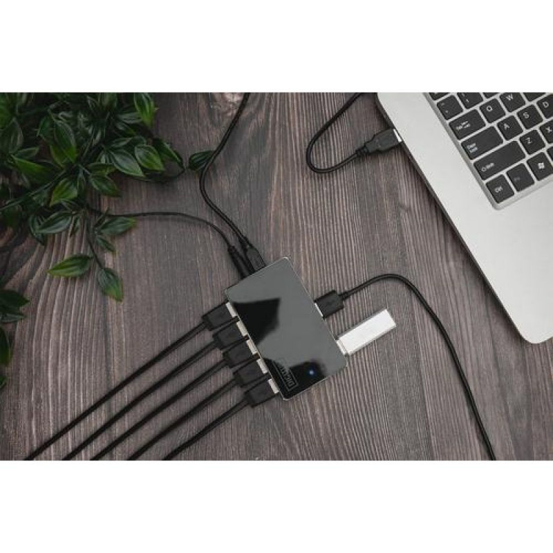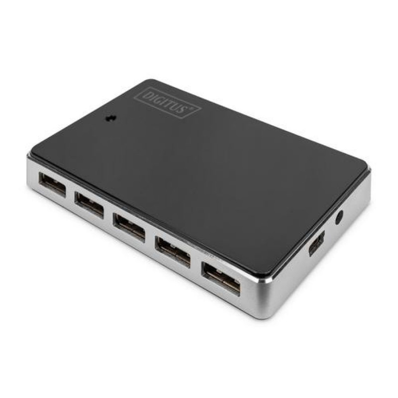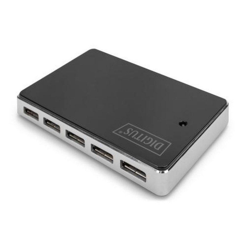 Your connection possibilities increased<br><br>- Connects up to 10 USB-devices at the same time<br>- Supports hot-plugging, plug & play capable<br>- Maximum data transfer rate 480Mbps (USB 2.0)<br><br>The DIGITUS® USB 2.0 10-port hub makes it simple to connect up to 10 USB-devices at the same time to a PC or Mac. Plug in your favorite USB-devices and profit from the very fast connection. This product has a clear and elegant design with a piano-black finish on the top and bottom surface, as well as an aluminium edge.Digitus USB 2.0 Hub, 10-Port. Hub interfaces: USB 2.0. Data transfer rate: 480 Mbit/s, Product colour: Black, Silver, Country of origin: China. Output voltage: 5 V, Output current: 4 A. Windows operating systems supported: Windows 7 Home Basic, Windows 7 Home Basic x64, Windows 7 Home Premium, Windows 7 Home Premium..., Mac operating systems supported: Mac OS X 10.0 Cheetah, Mac OS X 10.1 Puma, Mac OS X 10.2 Jaguar, Mac OS X 10.3 Panther, Mac OS X.... Package width: 120 mm, Package depth: 70 mm, Package volume: 646.8 cm³