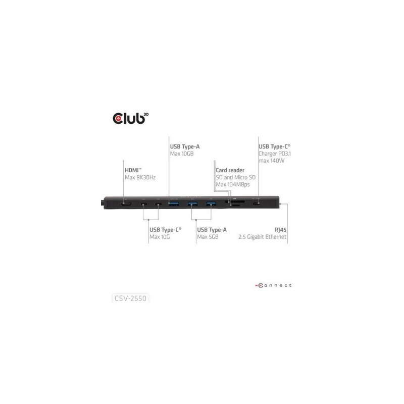 CLUB3D 10-1 Portable Dock USB Type-C® 10Gbps to HDMI™ 8K30Hz PD3.1 Max.140Watt