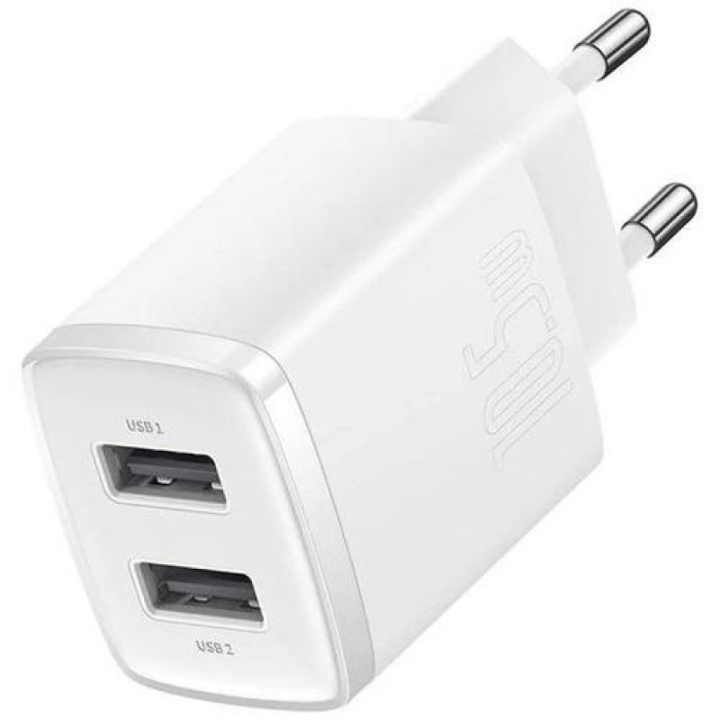 <br />Baseus Compact. Charger type: Indoor, Power source type: AC, Charger compatibility: Universal. Input voltage: 100 - 240 V, Maximum output voltage: 5 V. USB 2.0 ports quantity: 2. Product colour: WhiteOsta kohe, viimased eksemplarid laos!