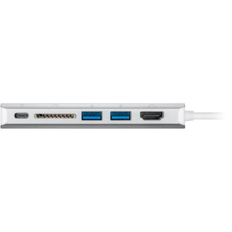 adds one Ethernet connection, one HDMI™ connection, two USB 3.0 connections, one USB-C™ connection and a card slot for SD cards to a USB-C™ deviceGoobay USB-C Multiport Adapter (HDMI 4k 30 Hz, USB, CR, RJ45, PD), Aluminium, Silver. Host interface: USB Type-C. Ethernet LAN data rates: 10,100,1000 Mbit/s. Product colour: Silver, Compatible memory cards: SD, HD type: 4K Ultra HD. Power supply type: USB. Width: 45 mm, Depth: 275 mm, Height: 15 mm