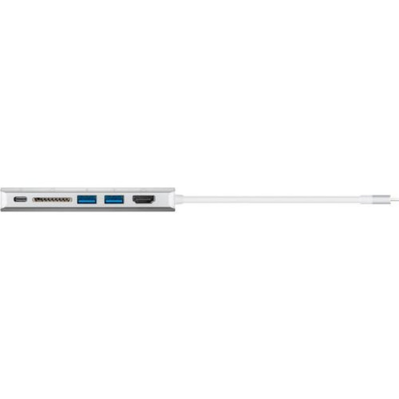 Goobay USB-C Multiport Adapter (HDMI 4k 30 Hz, USB, CR, RJ45, PD), Aluminium, Silver