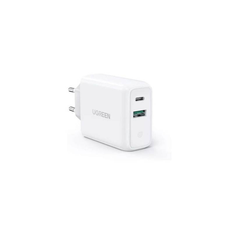 <b>CHARGE 2 DEVICES AT A TIME:</b><br><br>UGREEN fast charger has 2 ports, one for PD 3.0 and the other for Quick Charge 3.0, which allows you to simultaneously charge two devices with USB C and USB A, it will save you more time.<br><br><b>MUST-HAVE ON TRAVEL:</b><br><br>USB charger with two outputs of different simultaneous currents and higher charging speed, it will undoubtedly be an essential charger for travel.<br><br><b>18W Power Delivery USB C</b><br><br>The fast charge function fills the battery of your iPhone 11, 11 Pro, 11 Pro Max, X, XR, XS, XS Max, iPhone 8 or iPhone 8 Plus from 0 to 50% in 30 minutes and of your iPad Pro 2018 of 0 to 50% in 60 minutes. This means less time plugged in for your smartphone to reach 100% charge.<br><br><b>18W Quick Charge USB A</b><br><br>Allows fast charging for compatible mobile phones such as Samsung Galaxy S10 / S9 / S8 Plus / S8 / Note 8 / S7 / S7 Edge, Xiaomi Mi8 / Mi6 / Mi5 / Mi 5s, HTC 10 / One A9 / U Ultra / U11 / M9, LG G6 / G5 / G4 / V20 / V30, Google Pixel XL / Nexus 6P / 5X, Huawei P9 / Mate9, Sony Xperia XZ / XZ Premium and more.Ugreen 60468. Charger type: Indoor, Power source type: AC, Charger compatibility: Tablet, Telephone, Universal, USB Type-C ports quantity: 1, Fast charging. Product colour: White