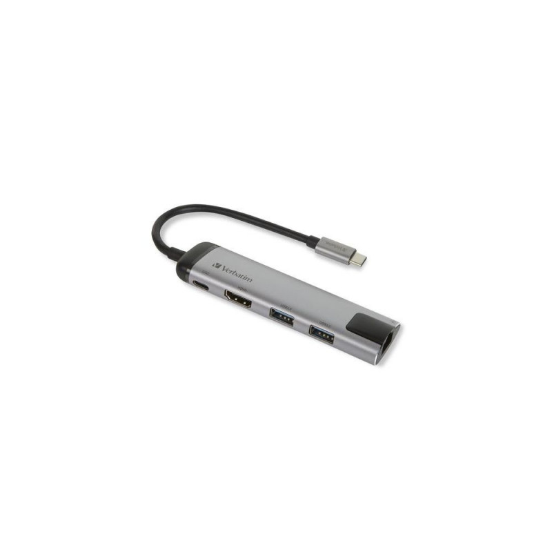 <b>Expand your potential</b><br>The USB-C Multiport Hub provides the ideal partner to latest slimline laptops and MacBooks. Additional accessories require additional ports which the latest laptops lack. This Multiport Hub provides a USB-C power charging port to charge your device whilst in use, an HDMI port to connect to an HDMI display as well as two USB 3.0 ports to plug in all the extra accessories that are needed and a gigabit ethernet port to connect to wired networks. Plug the Hub into the USB-C port on your laptop to immediately increase your working possibilities.<br><br><b>Ultra HD resolution</b><br>The HDMI port on the Multiport Hub allows you to expand your display onto a TV or monitor. It supports Ultra HD 4Krazor-sharp resolutions, providing feature-rich content for the ultimate immersive experience. Even at higher frame rates, the hub still provides smooth and continuous viewing without any loss or lag.<br><br><b>Ethernet connection</b><br>The Multiport Hub also features a Gigabit ethernet port. Ideal for when the wireless connection is inconsistent or unstable, you can now connect your laptop to the wired network by plugging in a gigabit ethernet cable.<br><br><b>Power Charging</b><br>The USB-C port provides uninterrupted pass-through charging. Some laptops only come with one USB-C port, so once you have added a hub, there is no extra port to plug in power. The USB-C port on the hub allows pass through charging from the power source, allowing the laptop to be charged while using all the other ports on the hub.<br><br><b>Space for accessories</b><br>Need your accessories? With two USB 3.0 ports, there is plenty of space to attach a mouse or a USB Drive, a hard drive or external DVD writer. With speeds of up to 5Gbps*, the USB 3.0 ports allow you to setup your own personal workspace, wherever you may be at the time.<br><br><b>Portable convenience</b><br>This ultra-portable brushed metal design makes this hub perfect for BYOD (Bring Your Own Device) applications at the office and when travelling.Verbatim 49141. Host interface: USB 3.2 Gen 1 (3.1 Gen 1) Type-C. Product colour: Black, Silver, Hub interfaces: USB 3.2 Gen 1 (3.1 Gen 1) Type-C, Housing material: Metal. Input current: 3 A. Width: 30 mm, Depth: 115 mm, Height: 15.3 mm. Quantity per pack: 1 pc(s)