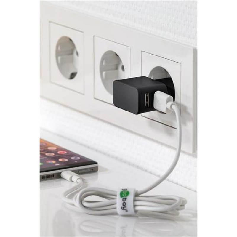 Charges up to two smartphones, cameras and other USB devices simultaneously<br>enables fast charging directly at the outlet<br>100 V to 240 V means it can also be used abroadGoobay 44951. Charger type: Indoor, Power source type: AC, Charger compatibility: Mobile phone, Smartphone. Input voltage: 100 - 240 V, Maximum output voltage: 5 V, AC adapter output current: 2.4 A. USB 2.0 ports quantity: 2. Product colour: Black