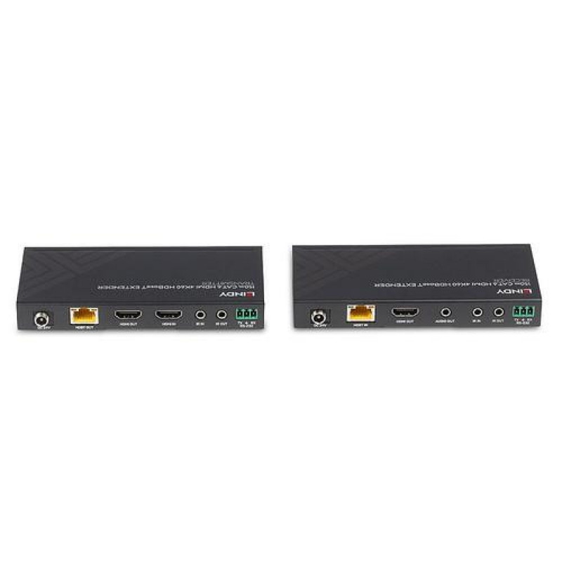 The Lindy C6 HDBaseT HDMI 18G and IR Extender is a complete high performance solution for extending HDMI signals over long distances via Cat.6 network cable. Combined this extender provides high quality content distribution up to distances of 150m.<br><br>The following distance and resolution combinations are possible when using high quality Cat.6 U/UTP or F/UTP cable:150m (492.12ft) - 1280x720@60Hz via Long Reach Mode100m (328.08ft) - 3840x2160@30Hz 4:4:4 8bit70m (229.66ft) - 3840x2160@60Hz 4:4:4 8bit<br><br>Supporting resolutions up to 4K UHD 3840x2160@60Hz, video can be viewed in stunning clarity, while additional support for HDR (High Dynamic Range) allows content to be displayed with enhanced brightness, greater contrasts of blacks and whites and a much wider colour gamut. This provides a reliable solution for creating eye-catching digital signage in retail, immersive displays at events or engaging setups in larger conference rooms or lectures halls. An HDMI loop out port provides additional capability for connecting a local display for monitoring of the video content in security or close-range distribution in residential installs, while simultaneously extending the signal to the receiver.<br><br>PoC (Power over Cable) functionality provides additional flexibility. This allows power to be supplied alongside data through Cat.6 network cable in a point to point connection between the transmitter and receiver, meaning only a single power supply is required at the transmitter unit. Ideal when power outlets are limited at the receiver end of the installation.<br><br>Featuring bi-directional IR ports at both sides of the setup, the source equipment can be easily controlled from the display side, and the display can also be controlled from the HDMI source side. Combined with CEC control, which allows commands from one main remote, this extension system allows for complete and simple control for the user.<br><br>Terminal blocks allows for pass-through of RS-232 commands when integrated into control systems.<br><br>HDBaseT is a globally recognised standard for high quality distribution of AV content and other technologies, including power and control, over longer distances via low cost Cat.6 or above cable.<br><br>HDBaseT and the HDBaseT Alliance logo are trademarks of the HDBaseT Alliance.<br><br>Please Note: This product uses the DSC method of compression to achieve 18G resolutions. If using another 18G HDBaseT product combined with this, please ensure both products support the same compression type.Lindy 150m Cat.6 HDMI 4K60, IR and RS-232 HDBaseT Extender. Type: AV transmitter & receiver, Maximum resolution: 3840 x 2160 pixels, Cable types supported: Cat6. Connectivity technology: Wired. Power source type: DC, Operating voltage: 24 V, Input current: 1 A. Width: 140 mm, Depth: 65 mm, Height: 18 mm. Package width: 245 mm, Package depth: 75 mm, Package height: 185 mm