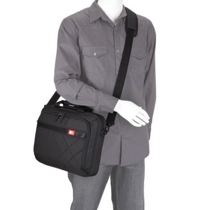 Modernized for today’s casual professional, this asymmetrically quilted case carries a laptop, tablet and your business needs within a deep black exterior highlighted with red accents.Case Logic 15.6" Laptop and Tablet Case. Case type: Messenger case, Maximum screen size: 39.6 cm (15.6"), Carrying handle(s), Shoulder strap. Weight: 550 g. Surface coloration: Monochromatic