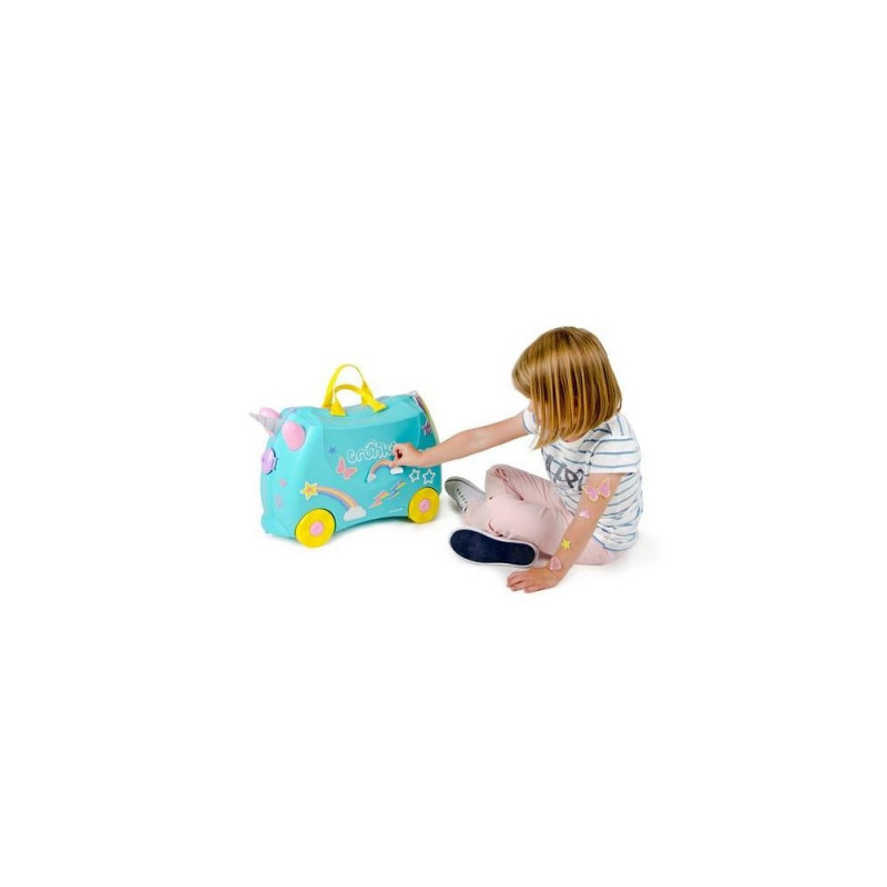 Una the Unicorn, with her magical powers had been designed to beat the boredom suffered by travelling tots - Trunki is a hand luggage-sized ride-on suitcase that tots can pack with all their favourite belongings whilst parents keep them in tow. Added play factor - comes with a silky rainbow tail and glittery horn and stickers. <br><br>Designed to be used as hand luggage, kids can pack Trunki with all their favourite belongings whilst parents keep them in tow. It’s made from the same lightweight yet durable plastic as adult suitcases, and we test it to the extremes to make sure it can take all the wear and tear an excited 3 year old can throw at it. We’re so confident of the quality, that we’re offering a free 5 year guarantee with every Trunki purchase.<br><br>*Hand luggage allowances vary so we recommend checking with your airline before you fly. Recommended for ages 3+Trunki Una the Unicorn. Luggage type: Suitcase, Product main colour: Pink, Turquoise, Yellow, Material: Plastic. Volume: 18 L, Height: 310 mm, Width: 460 mm