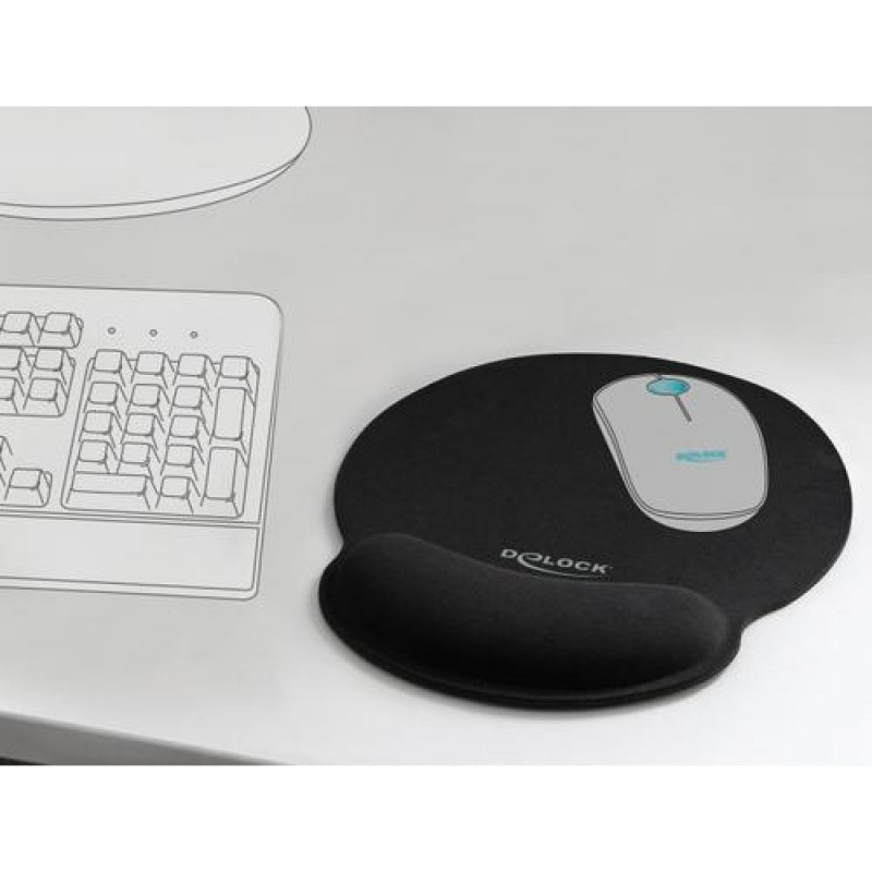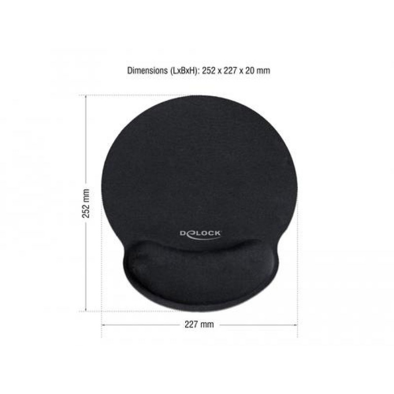 This ergonomical designed soft mouse pad by Delock acts due to its wrist rest relieving when working with a mouse. With its smooth gel filling the ball of the hand lays comfortable on the mouse pad.DeLOCK 12559. Width: 227 mm, Depth: 252 mm. Product colour: Black, Surface coloration: Monochromatic, Wrist rest, Non-slip base