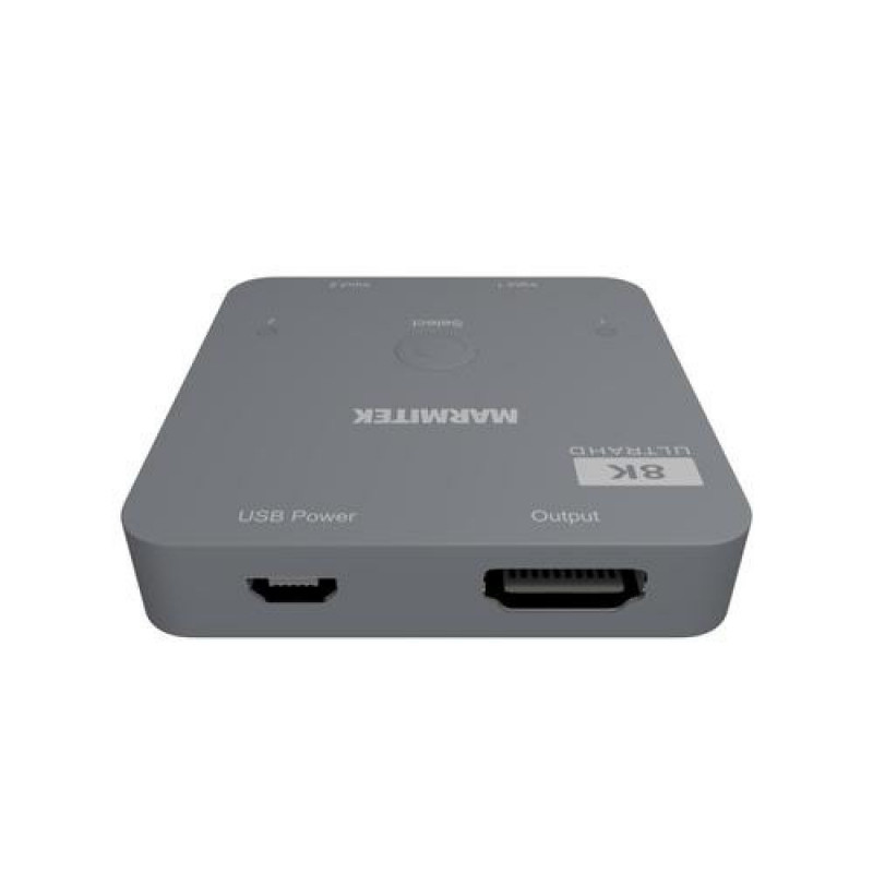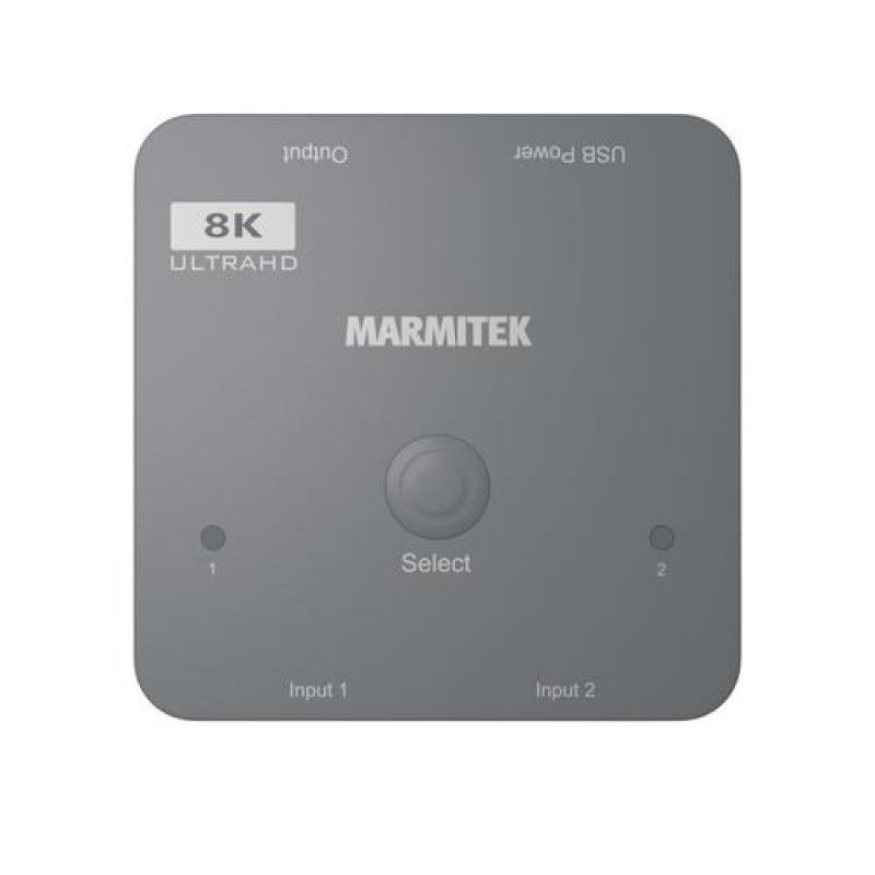 With this HDMI switch 8K, you can connect 2 devices (8K or 4K) with just one cable to the HDMI input on a TV or beamer. The Connect 720 is suitable for Ultra HD 8K60 (7680 x 4320/60Hz) & 4K120 (3840 x 2160/120Hz) resolution, HDR, Deep Colour and 4:4:4 chroma colours. Furthermore, this HDMI switch supports important gaming features such as VRR, ALLM, QMS and QFT. This makes the Connect 720 ideal for (simultaneously) connecting an Xbox Series X or Playstation 5.Marmitek Connect 720. Video port type: HDMI. Product colour: Grey, Maximum refresh rate: 120 Hz, Bandwidth: 48 Gbit/s. Certification: CE. Width: 60 mm, Depth: 60 mm, Height: 12 mm. Package width: 155 mm, Package depth: 70 mm, Package height: 130 mm