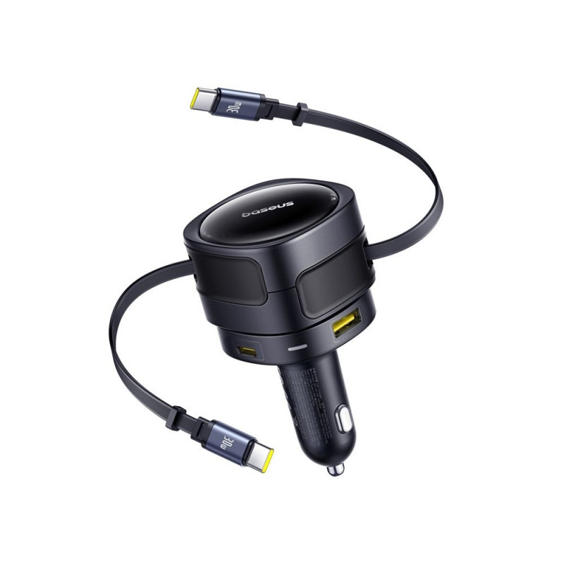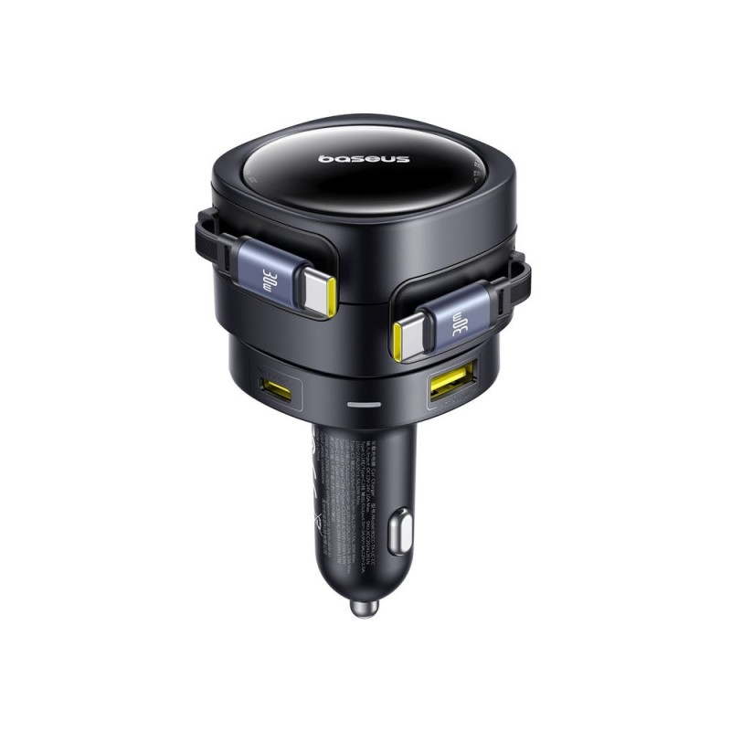 Baseuse autolaadija, millel on kaks sisseehitatud USB-C kaablit ning kaks lisaportti (USB-C ja USB-A), võimaldab laadida korraga kuni nelja seadet koguvõimsusega kuni 90 vatti. Integreeritud turvasüsteem, pööratav disain ja 12–24-voldine ühilduvus tagavad töökindluse igas sõidukis.