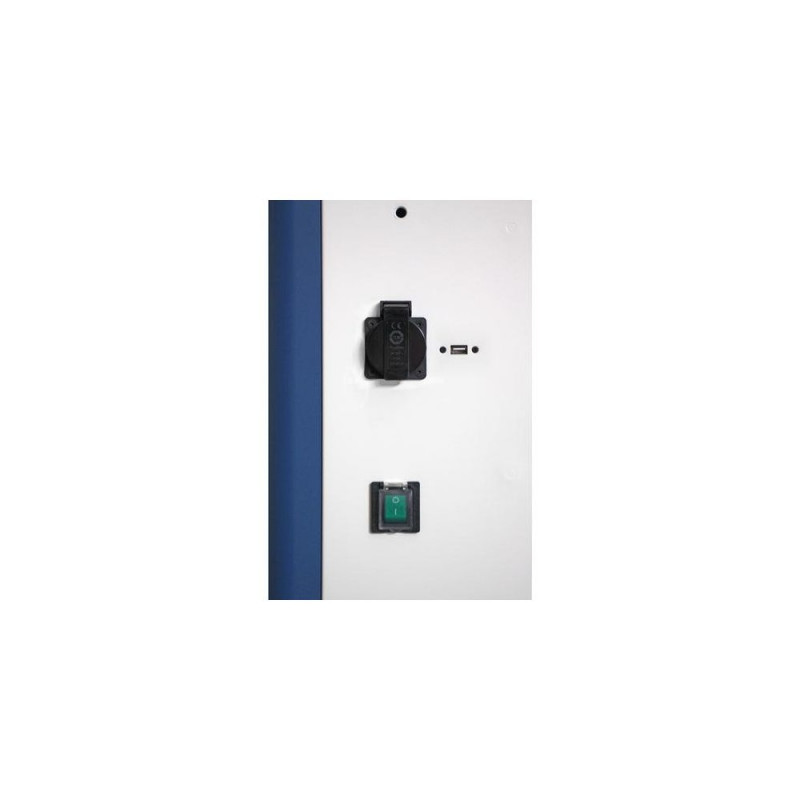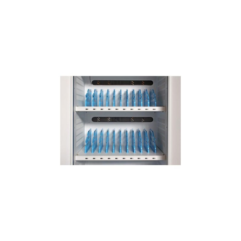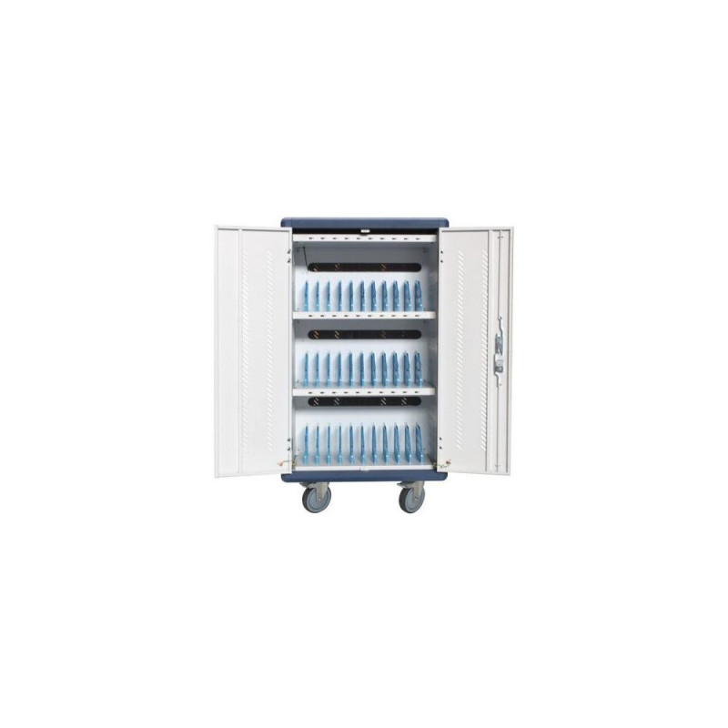 I-CABINET-30DUTY has been specially designed as a trolley and universal charging station for notebooks, tablets and smartphones.<br>Its innovative sturdy construction, the electronics dedicated to safety and the secure key locking system make it an ideal solution for offices, computer labs and classrooms where numerous ICT devices must be safely placed and recharged for use during the next day.<br>It is a safe place to store and charge multiple mobile devices at the same time. The closed and ventilated storage area keeps charging devices safe.<br>Thanks to its small size, it can hold up to 30 tablets / iPads, smartphones / iPhones or notebooks in very little space.<br>It is equipped with four solid wheels, two of which with brakes, so that it can be moved and repositioned very easily inside the classroom.<br>The upper external surface allows a comfortable support for notebooks or other electronic equipment and is designed for mounting optional fans.Techly I-CABINET-30DUTY. Type: Portable device management cart, Product colour: White, Blue, Placement: Floor. Supported portable devices: Laptop, Smartphone, Tablet, Device connectors supported: USB, Charging source: USB Type-A. AC input voltage: 220 V. Compliance certificates: CE, RoHS, Certification: CE, RoHS. Width: 700 mm, Depth: 650 mm, Height: 1110 mm