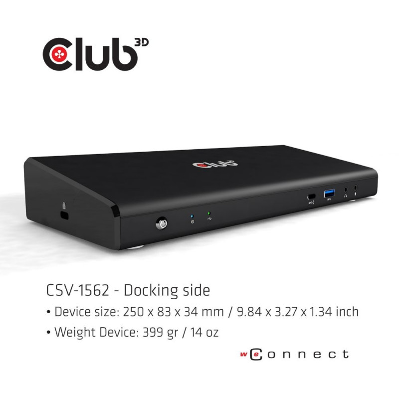 Club3D 4K Laadimisdokk USB-C ühendusega on mitmekülgne ja võimas dokkimislahendus, mis on loodud kaasaegse töökoha vajadusi silmas pidades. See dokk võimaldab ühendada ühe USB-C kaabli kaudu arvutiga korraga mitmeid seadmeid ja laiendada oluliselt töökoha funktsionaalsust. Ideaalne nii kontorisse kui ka kodukasutusse, võimaldab see dokk kiiret ja mugavat üleminekut sülearvuti mobiilsest kasutusest täisväärtuslikuks tööjaamaks.