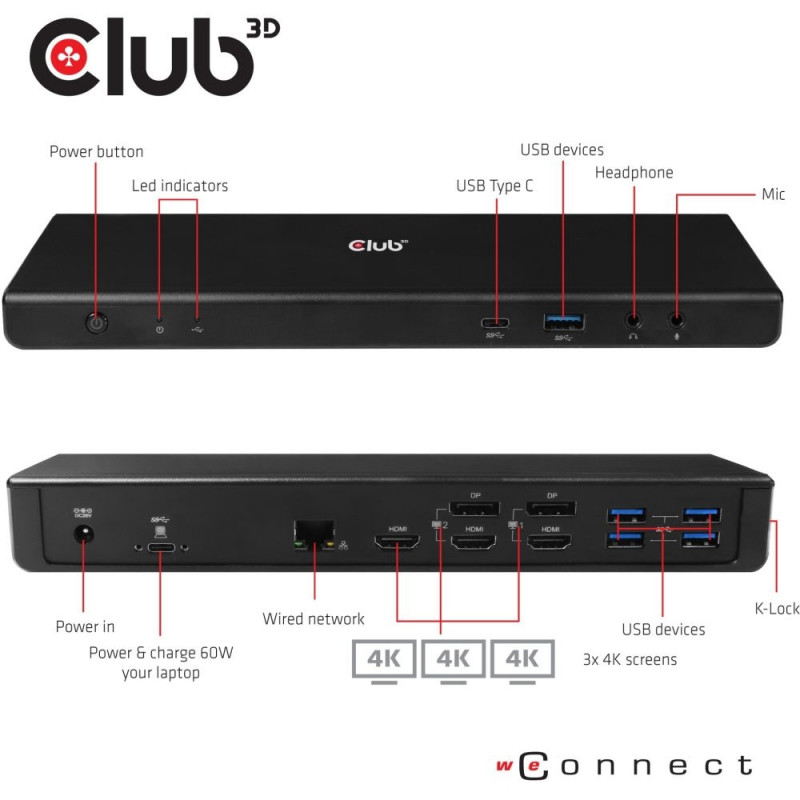 "Club3D 4K ChargingDock USB-C ->6xUSB3/2xDP/HDMI/LAN/Audio"