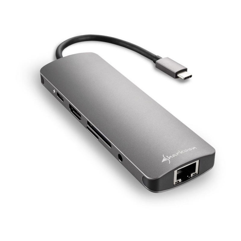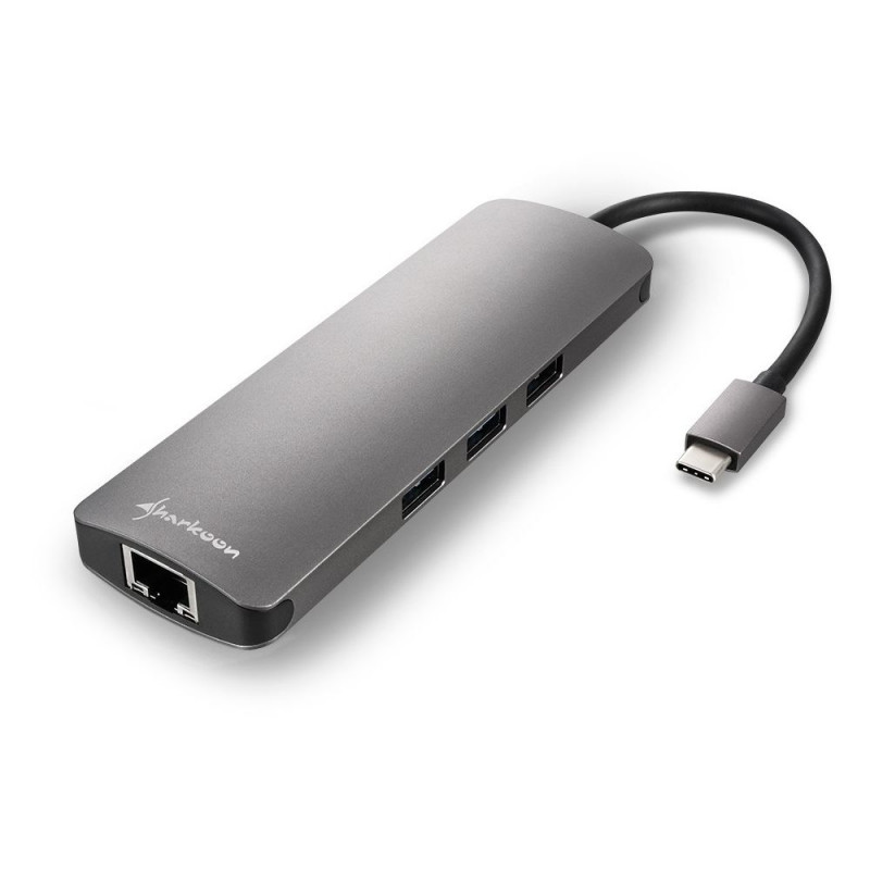 Sharkoon USB 3.0 Type C Combo Adapter. Host-liides: USB Type-C, väljundliidesed: HDMI, RJ-45, USB 3.2 Gen 1 (3.1 Gen 1). Toote värvus: hall, maksimaalne kaabli pikkus: 132 m. Andmeedastuskiirus (maks): 5 Gbit/s. Laius: 130 mm, sügavus: 44 mm, kõrgus: 15 mm.