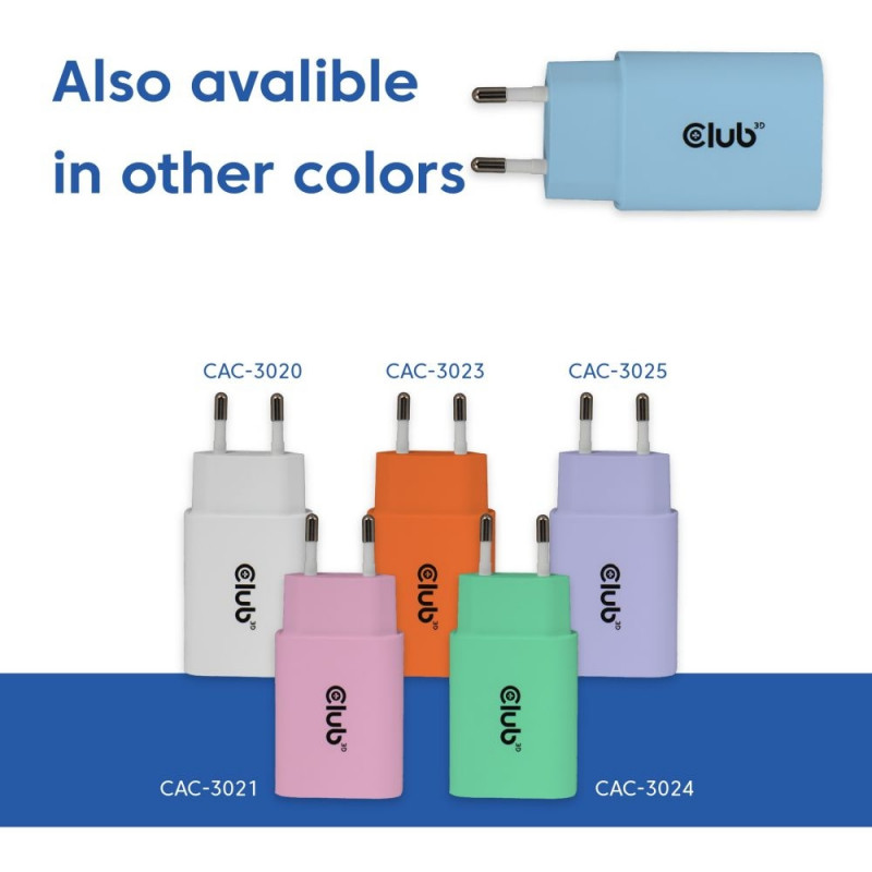 Tehnilised andmed:- Toote nimetus: Club3D Lifestyle USB-C 30W Laadija, 2 tk, sinine