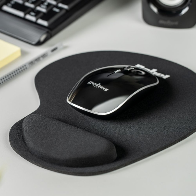 Mugavus ja tugi sinu randmelePikaajaline arvutitöö võib põhjustada randme väsimust ja valu. Selle probleemi vältimiseks on Rebel hiirematt varustatud mugava, pehme randmetoega, mis kohandub käe kujuga ja tagab kasutusmugavuse, mistõttu sobib see ideaalselt kontoritööks. Oluline on ka see, et matt on kaetud ühtlase musta kangaga ning ühildub kõikide arvutihiirte tüüpidega.