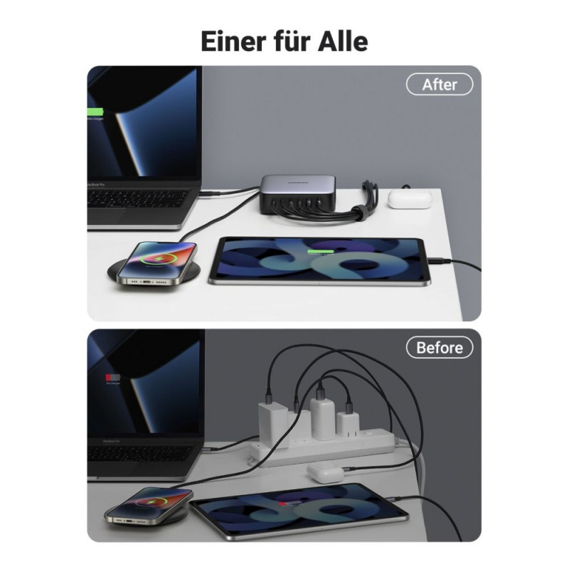 Minimalistlik ja stiilne disain sobib igasse interjööri ning kompaktne suurus teeb selle hõlpsasti kaasaskantavaks. Ugreen Nexode 200W GaN laadimisjaam on ideaalne valik nii tehnoloogiahuvilistele kui ka professionaalidele, kes hindavad kiirust, ohutust ja mitmekülgsust.