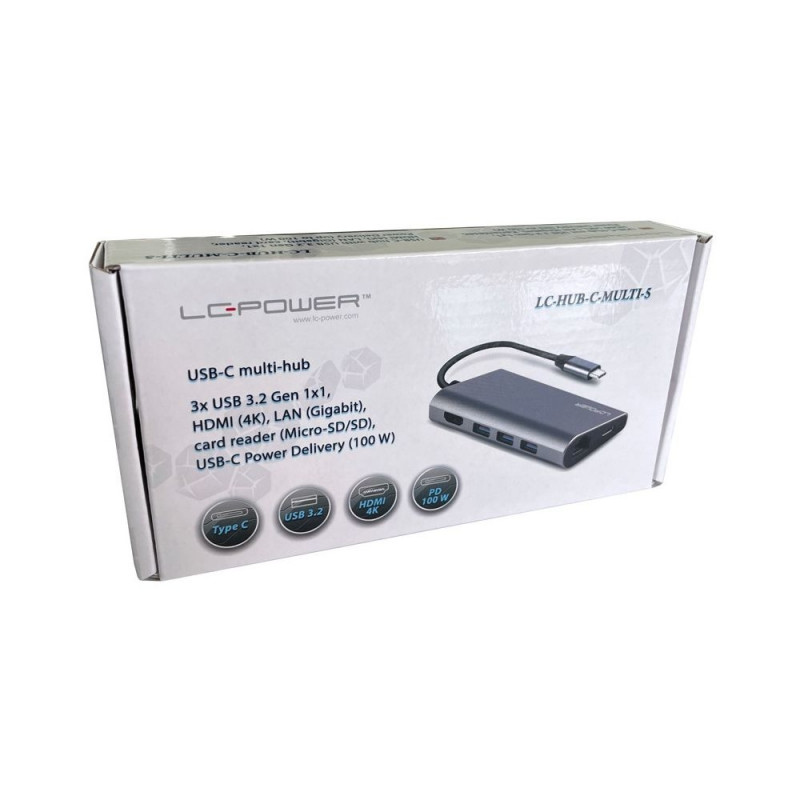 "LC-Power LC-HUB-C-MULTI-5 USB-C auf 3xUSB-A/USB-C/HDMI/MicroSD/SD/LAN"