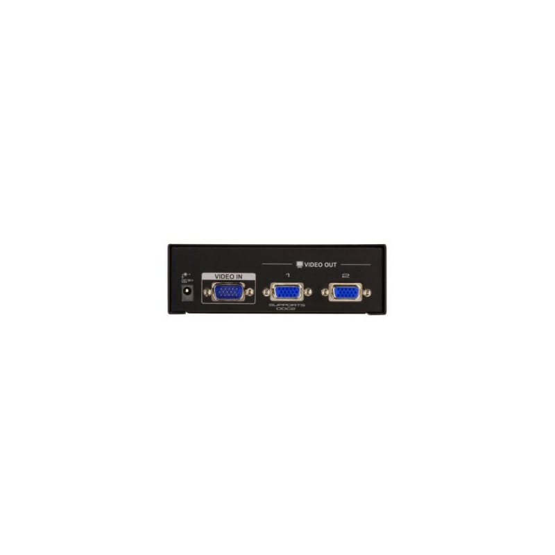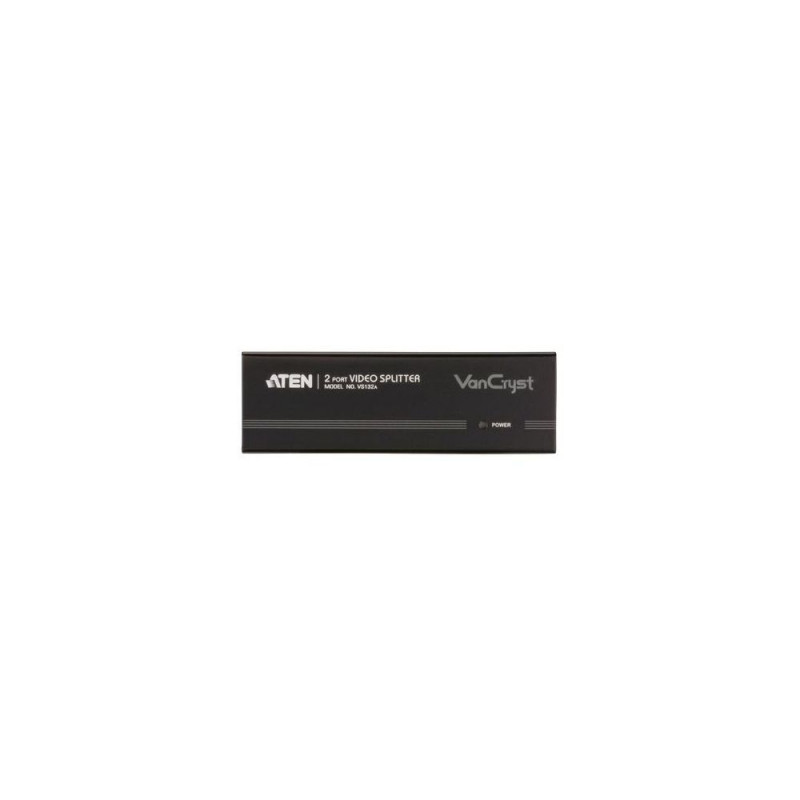 The VS132A Video Splitter is a boosting device that duplicates a video signal from one source to 2 output devices. Cascadable to three levels, the VS132A provides up to 8 video signals, in addition to extending transmission distance up to 30 m, making it excellent for public broadcast systems.<br><br>To transmit multiple, high-quality VGA, XGA, SVGA, UXGA, QXGA, WUXGA and multisync video signals over long distance without hassle, the VS132A is your best choice.<br><br>Applications include:<br>• Financial - the remote display of stock market information<br>• Education - the remote display of lectures and lessons to halls and classrooms<br>• Business - the remote display of addresses to overflow rooms; video conferencing; and demosATEN VS132A. Video port type: VGA, Video out: 2x VGA, Video in: 1 x HDB-15 Male (Blue). Maximum resolution: 2048 x 1536 pixels, Product colour: Black, Maximum operating distance: 30 m. AC input voltage: 5 V, Power consumption (typical): 0.78 W. Dimensions (WxDxH): 130 x 75.1 x 44 mm, Weight: 420 g. Packaging content: 1x VS132A Video Splitter 1x Power Adapter 1x User Guide