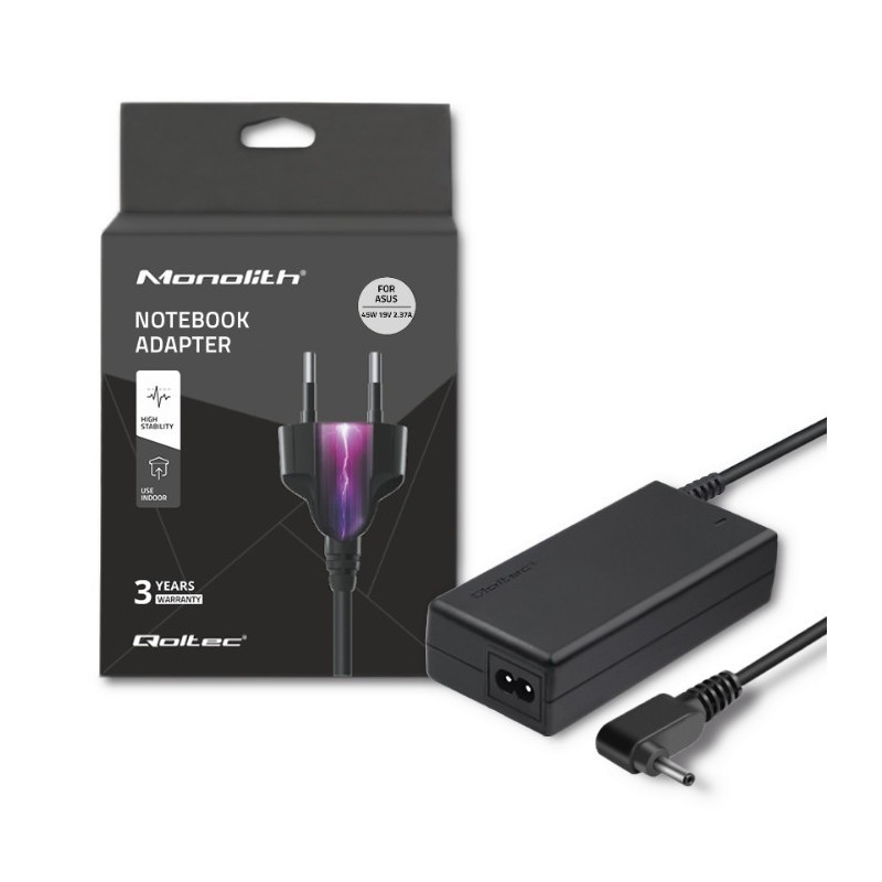 Usaldusväärsus on sulle oluline? Vali Asusile pühendatud toiteadapter, 45W, 19V, 2.37A, millel on 4.0*1.35 pistik. See on ideaalne kodu- või kontorikasutuseks, olles sinu peamine või varutoiteallikas. Olgu sul vaja seda tööks, õppimiseks, mängimiseks või reisimiseks, Qoltec'i sülearvuti laadija tagab sujuva ja ohutu seadme töö. See on valmistatud kvaliteetsetest materjalidest, kasutades tehnoloogiaid, mis soodustavad madalat energiatarbimist ja kõrget efektiivsust. Pakend sisaldab laadijat, toitekaablit ja kaabli kinnitamise rihma, mis võimaldab sul kaabli pikkust vastavalt vajadusele reguleerida.