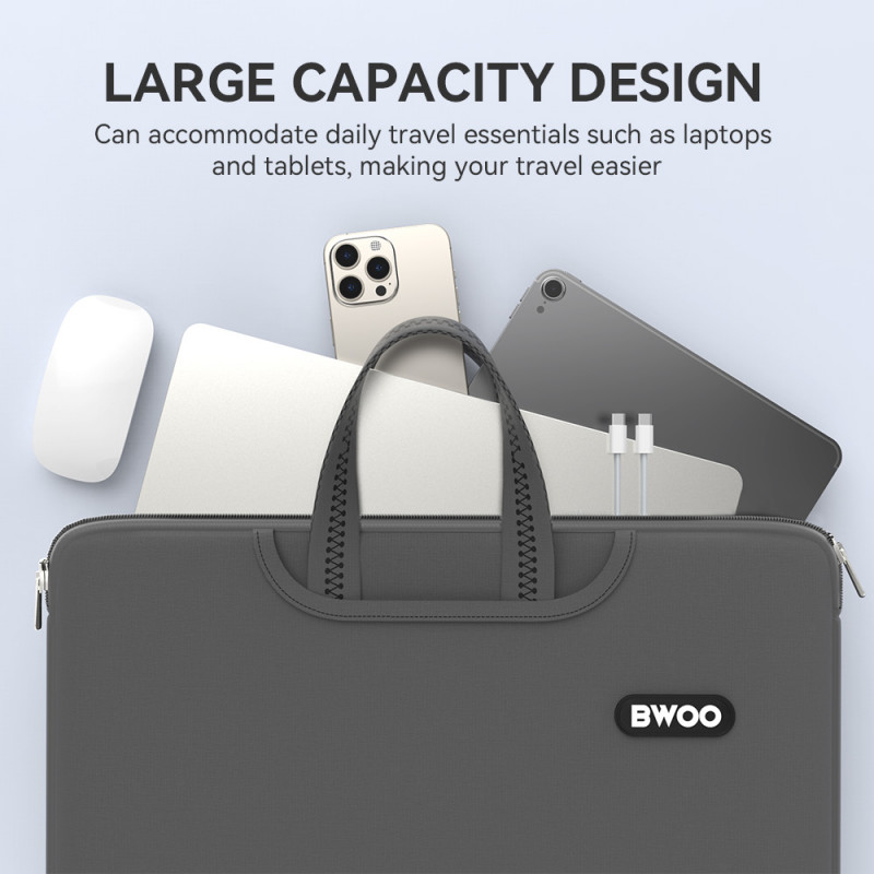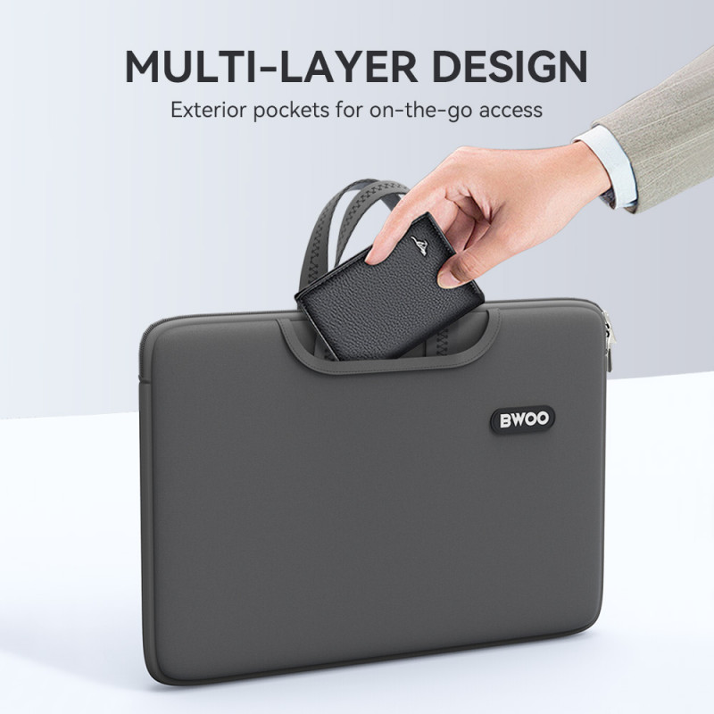 Sinu seadmete kaitseks on kotil sisseehitatud löögikindlad ribad, mis pakuvad igakülgset kaitset. Kott on kerge ja elegantne ning mugav käepide muudab selle kaasas kandmise lihtsaks ja vaevatuks.