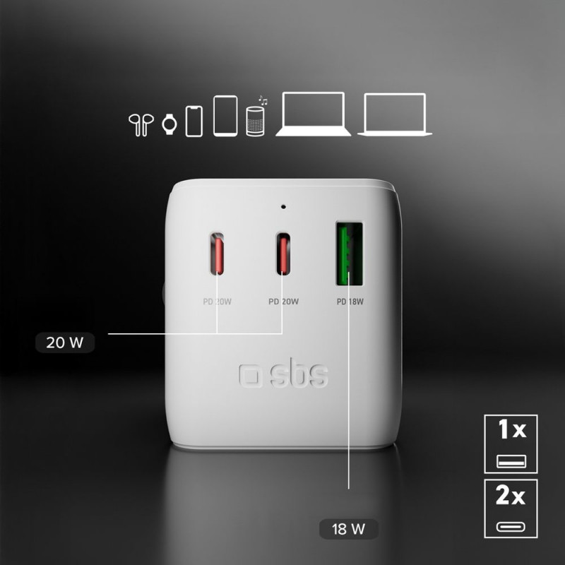 SBS Travel Adapter 2xUSB-C 1xUSB-A Universal - White