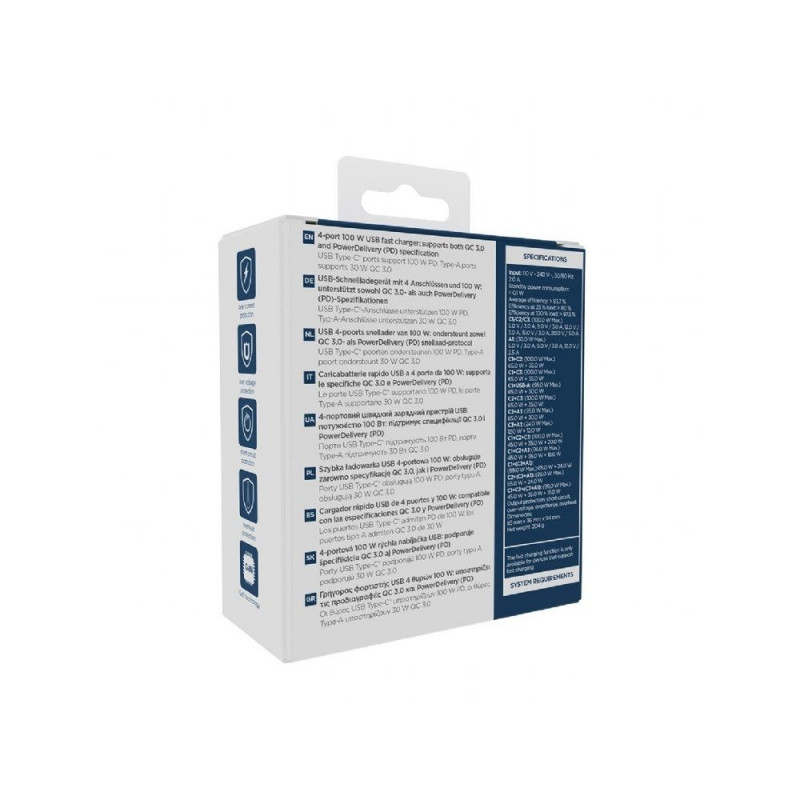 Mobile Device Charger - Gembird TA-UC-PDQC100LCD-01 100W Fast Charging Black