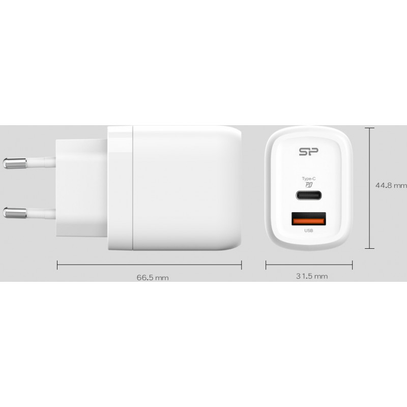 Silicon Power laadija USB-C/USB QM25 30W, valge (avatud pakend)