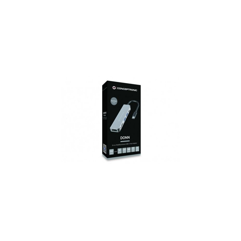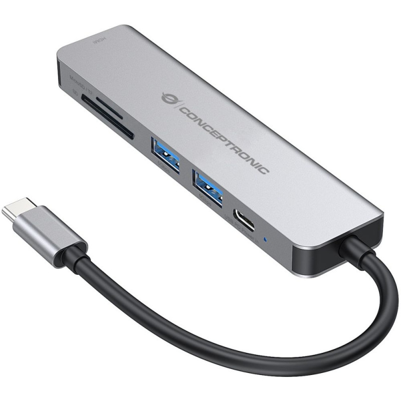 Conceptronic DONN02G. Hostiliides: USB 3.2 Gen 1 (3.1 Gen 1) Type-C, USB-toiteallikas kuni: 60 W. Toote värvus: alumiinium, Ühilduvad mälukaardid: MicroSD (TransFlash), MicroSDHC, SD, SDHC, SDXC, Jaoturi liidesed: HDMI, USB 3.2 Gen 1 (3.1 Gen 1) Type-A, USB 3.2 Gen 1 (3.1 Gen 1) Type-C. Laius: 35,8 mm, sügavus: 120 mm, kõrgus: 15 mm. Kogus pakendis: 1 tk, Pakendi laius: 75 mm, pakendi sügavus: 25 mm. Kaabli pikkus: 0,115 m