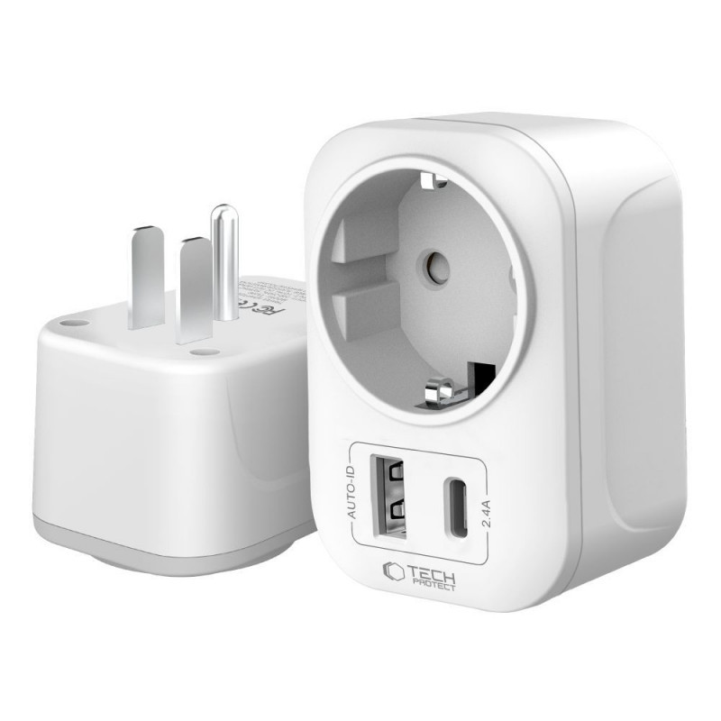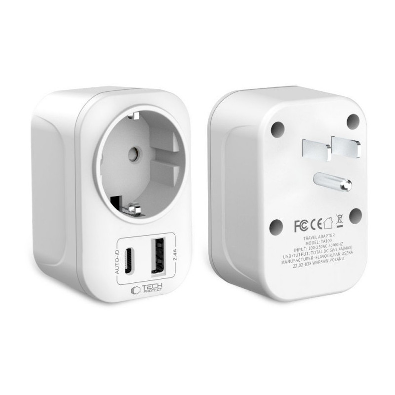 Tech-Protect reisiadapter TA100 US-EU, valge