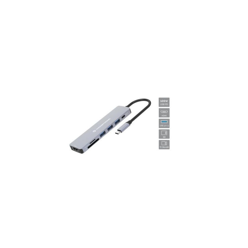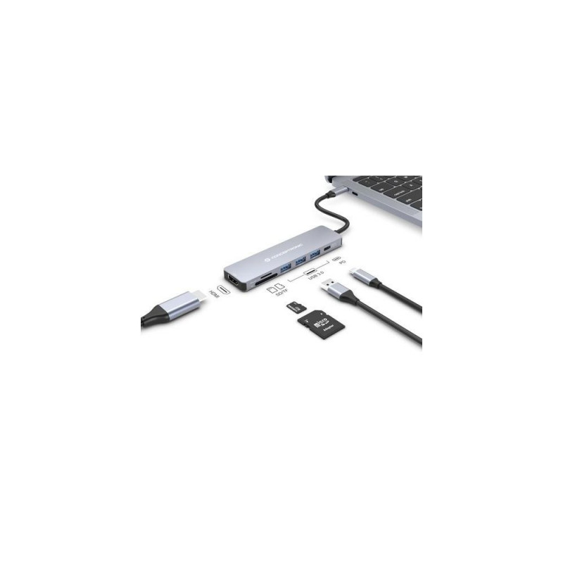 Conceptronic DONN19G 7-in-1 USB 3.2 Gen 1 Docking Station, HDMI, USB-A 3.0 x 3, SD, TF/MicroSD, 100W
