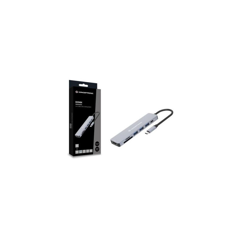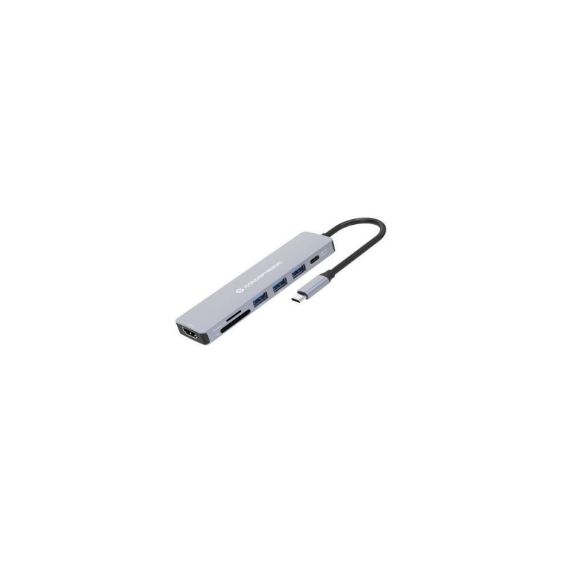 This 7-in-1 Docking Station makes it possible to expand your device’s USB Type-C capacity with HDMI/USB-C PD/USB 3.0/SD/TF ports. The docking station provides an easy way to add HDTV, or equipment such as a monitor or projector to any USB-C device such as a smartphone, portable gaming console, MacBook, Chromebook Pixel or any similar late-model laptop with USB-C ports. Perfect for home entertainment, office presentations and classroom teaching.Conceptronic DONN19G 7-in-1 USB 3.2 Gen 1 Docking Station, HDMI, USB-A 3.0 x 3, SD, TF/MicroSD, 100W USB PD. Connectivity technology: Wired, Host interface: USB 3.2 Gen 1 (3.1 Gen 1) Type-C, USB Power Delivery up to: 100 W. Product colour: Grey, Compatible memory cards: MicroSD (TransFlash), SD, Data transfer rate: 5 Gbit/s. Power source type: USB, USB cable length: 0.25 m. Windows operating systems supported: Windows 7 Ultimate x64, Windows Vista Home Premium x64, Windows 10, Windows 7 x64, Windows Vista..., Mac operating systems supported: Mac OS X 10.15 Catalina, Mac OS X 10.7 Lion, Mac OS X 10.15.3 Catalina, Mac OS X 10.7.5 Lion, Mac..., Mobile operating systems supported: Android 10.0, Android 11.0, Android 12.0, Android 5.0, Android 5.1, Android 6.0, Android 7.0,.... Width: 124.6 mm, Depth: 31.5 mm, Height: 11 mm