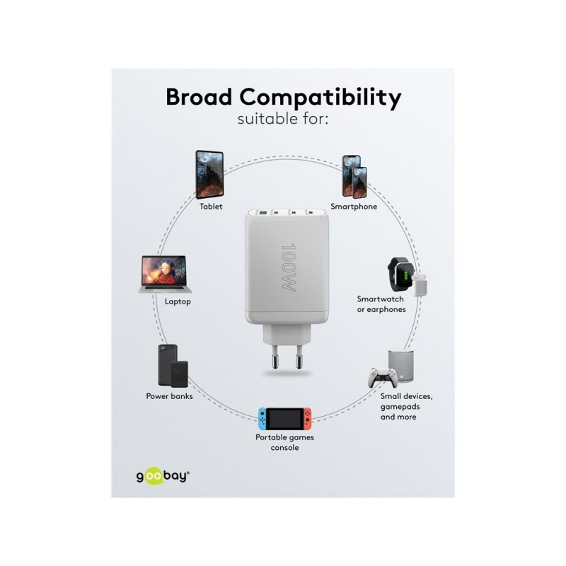 Goobay USB-C™ PD GaN multiport kiirlaadija (100 W) valge