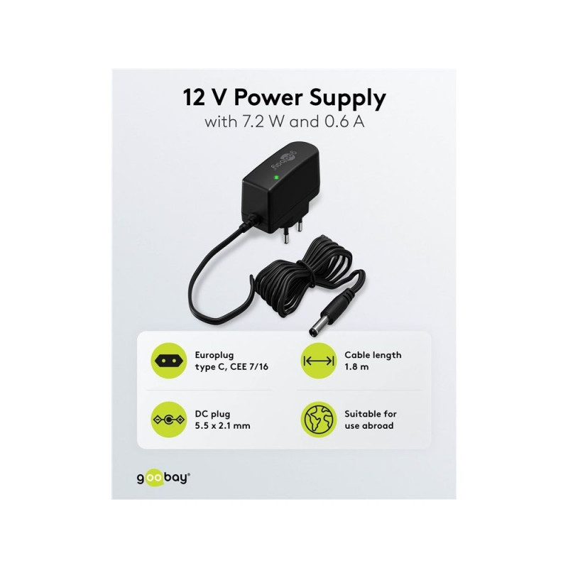 Goobay 12 V toiteplokk (7,2 W / 0,6 A)