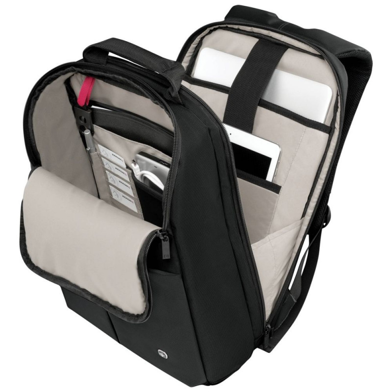 Koti peamine sülearvutitasku on polsterdatud, et kaitsta seadet põrutuste ja kriimustuste eest. Lisaks on kotil mitmeid lisataskuid ja -sahtleid, kuhu saab paigutada laadijaid, dokumente, kirjutusvahendeid ja muid tarvikuid. Eesmine lukuga tasku võimaldab kiiret ligipääsu kõige olulisematele esemetele, näiteks võtmetele või telefonile. Tänu reguleeritavale ja pehmendatud õlarihmale ning mugavatele sangadele on kotti lihtne ja mugav kaasas kanda ka pikematel teekondadel.