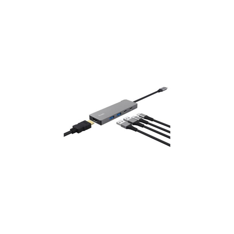 <br />Trust 26062. Host interface: USB Type-C, Hub interfaces: HDMI, USB 3.2 Gen 1 (3.1 Gen 1) Type-A, USB 3.2 Gen 1 (3.1 Gen 1) Type-C. Product colour: Grey, Cable length: 0.1 m. Windows operating systems supported: Windows 11, Mac operating systems supported: Mac OS X 13.0 Ventura, Mac OS X 14.0 Sonoma, Mac OS X 15.0 Sequoia. Width: 108 mm, Depth: 34 mm, Height: 11 mm