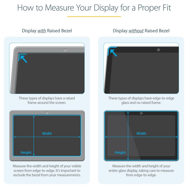 StarTech.com 14 tolli sülearvuti privaatsusfilter - privaatsusfilter laiekraanile (16:9) - sülearvuti anti-spy/sinise valguse filter 51% sinise valguse vähendamisega - privaatsusfilter sülearvutile, matt/läikiv. Maksimaalne ekraani suurus: 35,6 cm (14"). Kuvasuhe: 16:9. Sobib: sülearvuti, tüüp: raamita privaatsusfilter. Pinnaviimistlus: läikiv/matt, piirab vaatenurka: 60°. Kaal: 98 g