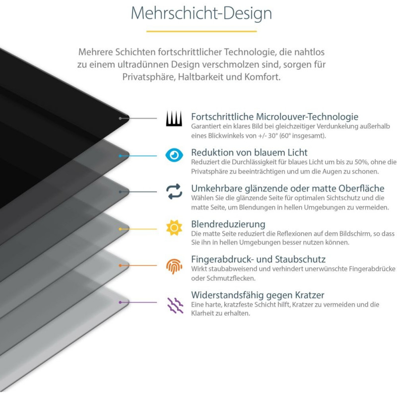 StarTech.com ekraanikaitsekile 23,8-tollisele (60 cm) arvutiekraanile – monitori privaatsuskile – ekraani vaatepiiraja – sinise valguse filter – 16:9 laiekraan – matt/läikiv. Maksimaalne ekraanisuurus: 60,5 cm (23,8"). Kuvasuhe: 16:9. Sobib: monitorile, tüüp: raamita privaatsusfilter. Piirab vaatenurka: 30°. Kaal: 98 g