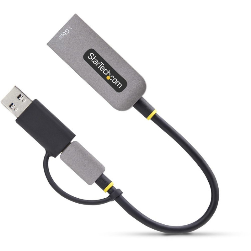 StarTech.com USB-C Etherneti adapter koos USB-A dongliga, 10/100/1000 Mbps, 15 cm kaabel, USB 3.0 gigabitine adapter, USB Etherneti adapter-LAN adapter, Windows/macOS/Linux/iOS/ChromeOS. Ülekandetehnoloogia: juhtmega, hostiliides: USB Type-A/USB Type-C, liides: Ethernet. Maksimaalne andmeedastuskiirus: 5000 Mbit/s. USB. Toote värvus: hall.