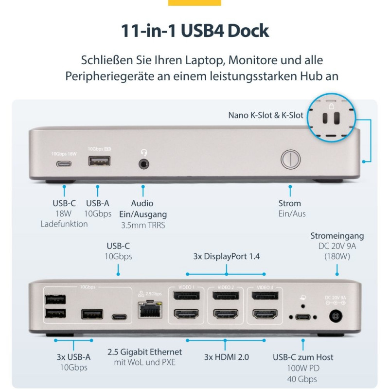 "D StarTech 3X MONITOR USB4 DOCK 100W PD"