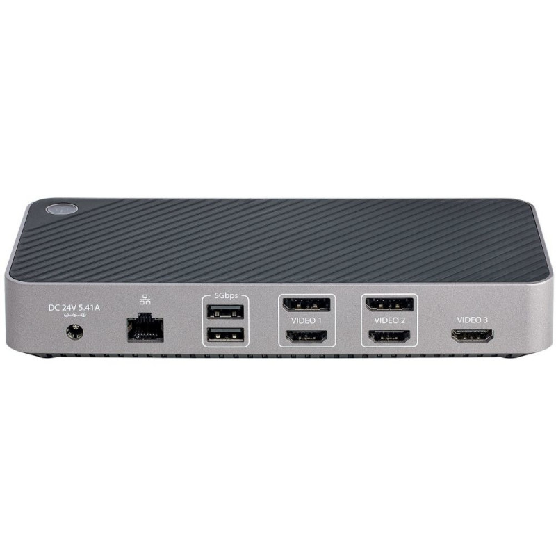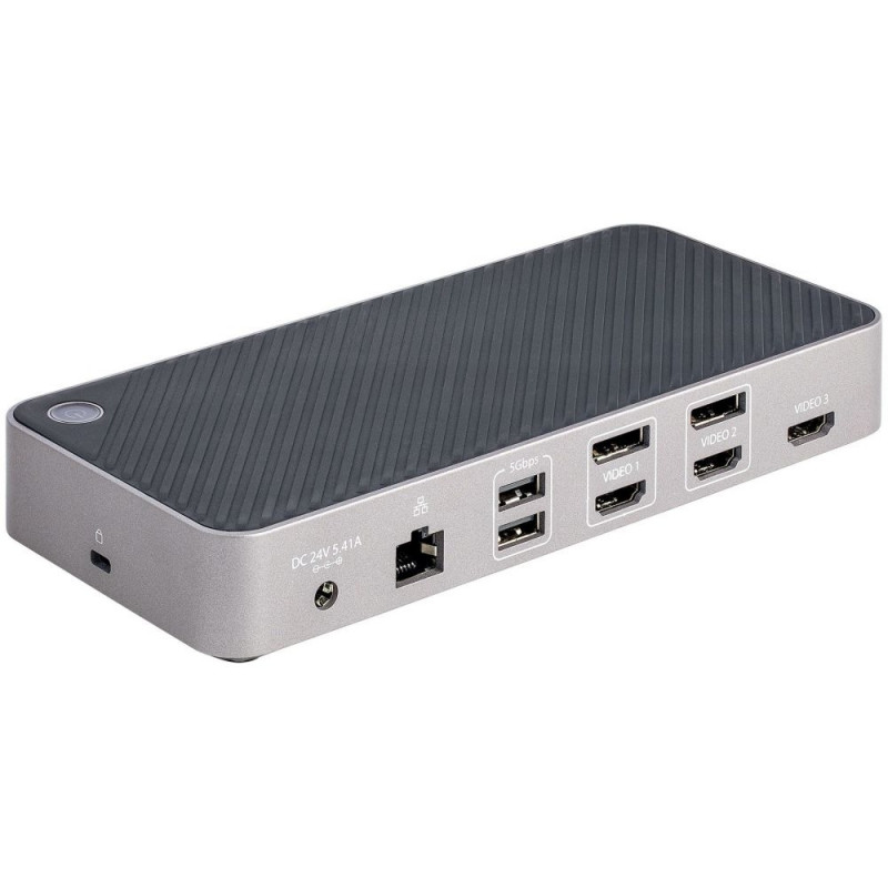 StarTech.com USB-C kolmikmonitori dokkimisjaam – HDMI/DP kolmik 4K USB-C dokk – 5x USB jaotur – GbE – 100 W PD – universaalne mitme monitori dokkimisjaam – Thunderbolt 3/4 ühilduv. Ülekandetehnoloogia: juhtmega, hostiliides: USB 3.2 Gen 2 (3.1 Gen 2) Type-C, USB-toiteallikas kuni: 100 W. Vask Etherneti kaabeldustehnoloogia: 10BASE-T, 100BASE-TX, 1000BASE-T, võrgustandard: IEEE 802.3ab. Toote värv: hall, hõbe, andmeedastuskiirus: 10 Gbit/s, HD-tüüp: 4K Ultra HD. AC sisendpinge: 100–240 V, sisendvool: 2,5 A, väljundpinge: 24 V. Toetatud Windowsi operatsioonisüsteemid: Windows 10, Windows 10 Education, Windows 10 Education x64, Windows 10 Enterprise, Windows 10..., Toetatud Maci operatsioonisüsteemid: Mac OS X 10.11 El Capitan, Mac OS X 10.12 Sierra, Mac OS X 10.14 Mojave, Mac OS X 10.15 Catalina,... Toetatud mobiilsed operatsioonisüsteemid: Android