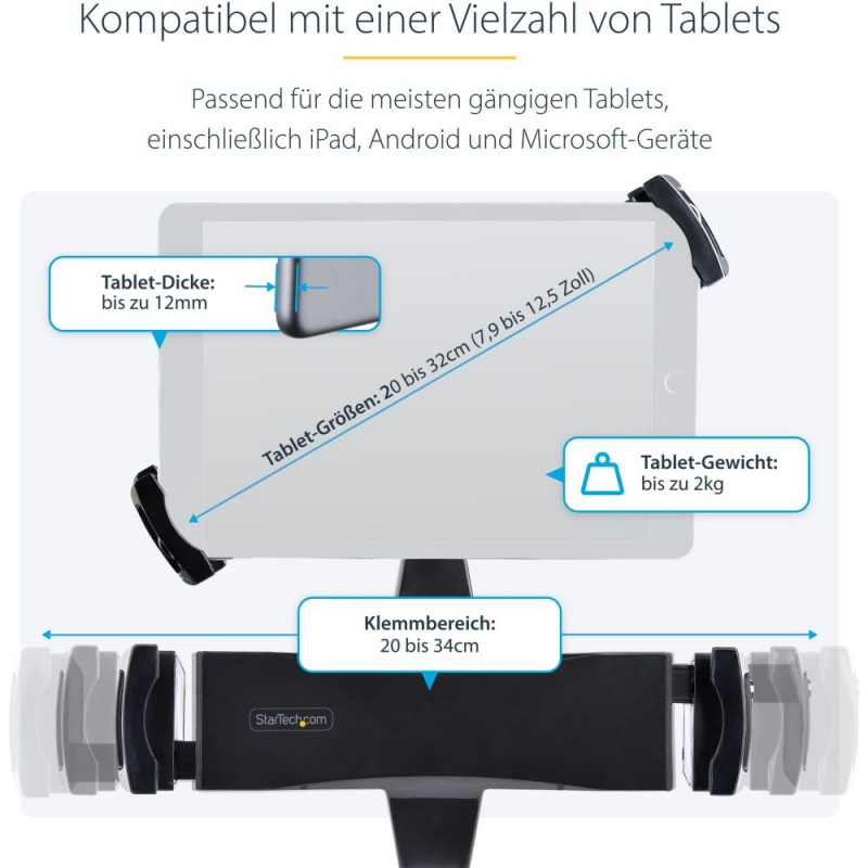 StarTech.com VESA tahvelarvuti hoidik monitori varrele – varguskindel tahvelarvuti hoidik 7,9 kuni 12,5-tollistele ja kuni 2 kg kaaluvatele seadmetele – VESA adapter/hoidik tahvelarvutile monitorihoidikute jaoks – monitori vars müüakse eraldi. Mobiilseadme tüüp: tahvelarvuti/UMPC Tüüp: passiivne hoidik Ettenähtud kasutus: siseruumides Toote värv: must