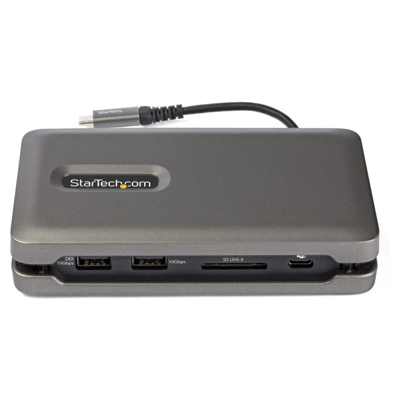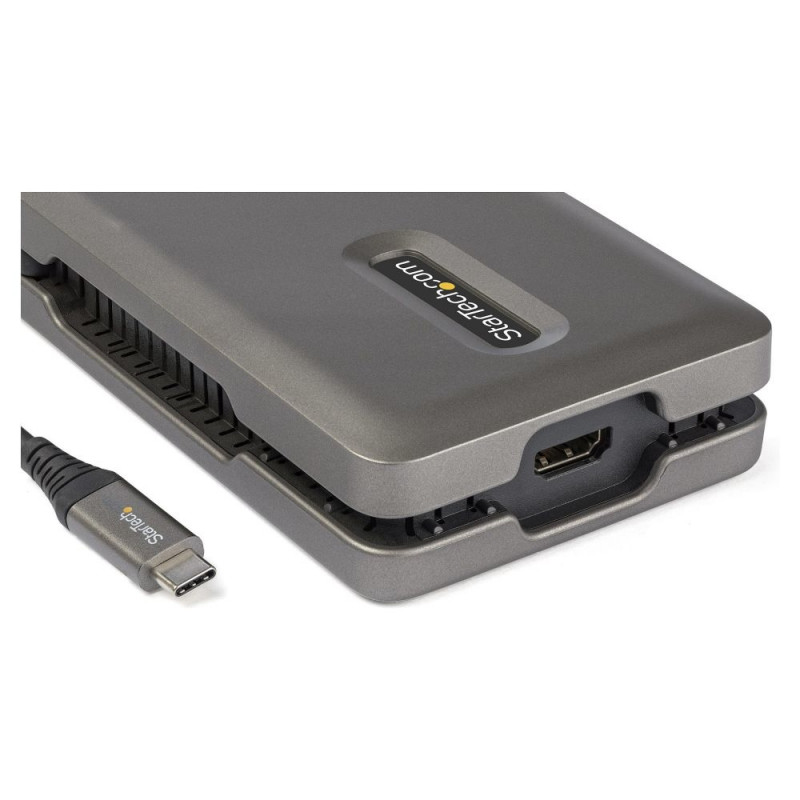 StarTech.com USB C Multiport Adapter - USB C 4K 60Hz HDMI 2.0 dokkimisjaam/reisiadapter - 2-pordiline 10Gbit/s USB jaotur - 100W Power Delivery toide - SD/MicroSD kaardilugeja - 25 cm kaabel. Ühenduvustehnoloogia: Juhtmega, Host-liides: USB 3.2 Gen 2 (3.1 Gen 2) Type-C, USB-toide kuni: 100 W. Ethernet LAN andmeedastuskiirused: 10,100,1000 Mbit/s, Võrgustandard: IEEE 802.3, IEEE 802.3ab, IEEE 802.3u. Toote värv: Hall, Ühilduvad mälukaardid: MMC, SD, Andmeedastuskiirus: 10 Gbit/s. Energiatarve (tüüpiline): 15 W. Toetatud Windowsi operatsioonisüsteemid: Windows 10, Windows 10 Education, Windows 10 Education x64, Windows 10 Enterprise, Windows 10..., Toetatud Maci operatsioonisüsteemid: Mac OS X 10.13 High Sierra, Mac OS X 10.14 Mojave, Mac OS X 10.15 Catalina, Mac OS X 10.15.3..., Toetatud mobiilsed operatsioonisüsteemid: Android 10.0, Android 11.0, Android 9.0, iPadOS
