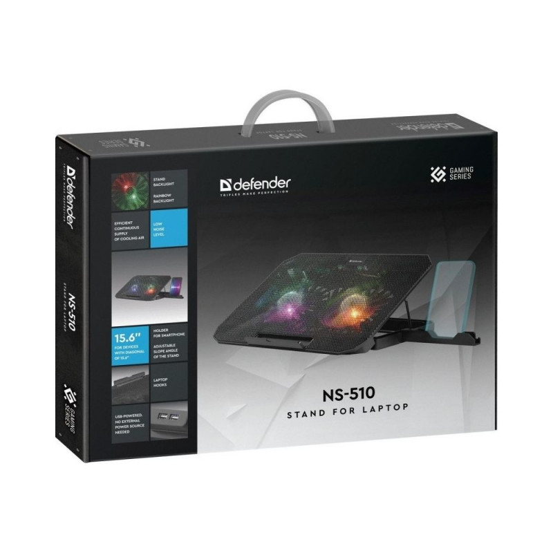 NS-510 sülearvutialus. Kompaktne ja mugav sülearvutialus, millel on kaks võimsat ventilaatorit ja vikerkaarevärviline taustvalgustus. Nutitelefoni alus ja reguleeritav kaldenurk tagavad maksimaalse mugavuse nii töötamisel kui ka mängimisel.