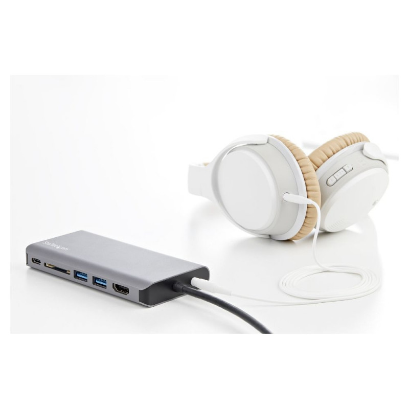 StarTech.com USB-C mitmeotstarbeline adapter – USB-C mini reisidokk 4K HDMI või 1080p VGA-ga – 3x USB 3.0 jaotur, SD, GbE, audio, 100 W PD läbivool – kaasaskantav dokk sülearvutile/tahvelarvutile. Ülekandetehnoloogia: juhtmega, hostiliides: USB 3.2 Gen 1 (3.1 Gen 1) Type-C, USB-toiteallikas kuni: 100 W. Etherneti LAN andmeedastuskiirused: 10, 100, 1000 Mbit/s. Toote värv: must, hall, ühilduvad mälukaardid: SD, SDHC, SDXC, andmeedastuskiirus: 5 Gbit/s. Toetatud Windowsi operatsioonisüsteemid: Windows 10, Windows 10 Education, Windows 10 Education x64, Windows 10 Enterprise, Windows 10..., Toetatud Maci operatsioonisüsteemid: Mac OS X 10.11 El Capitan, Mac OS X 10.12 Sierra, Mac OS X 10.13 High Sierra, Mac OS X 10.14..., Toetatud mobiilsed operatsioonisüsteemid: Android, iOS. Laius: 61 mm, sügavus: 460 mm, kõrgus: 15 mm
