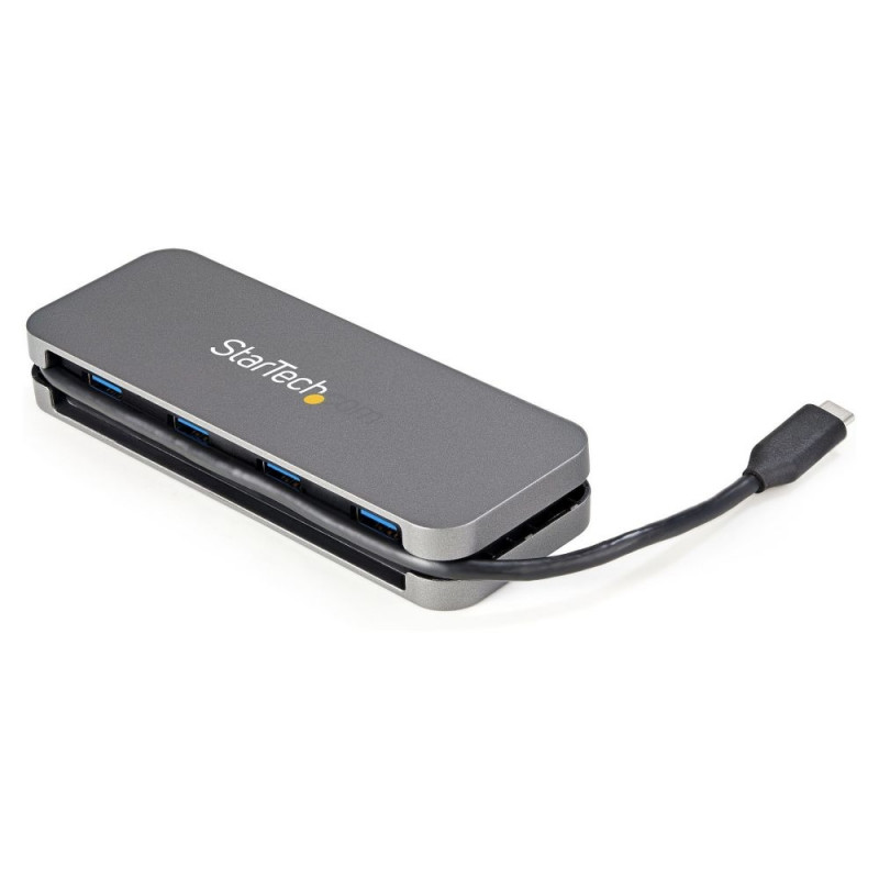 StarTech.com 4-portiline USB-C jaotur – 4x USB-A – 5 Gbit/s USB 3.0 Type-C jaotur (USB 3.2 Gen 1) – Bussitoitel – Kaasaskantav USB-C–USB-A adapterjaotur – 28,5 cm integreeritud host-kaabel. Host-liides: USB 3.2 Gen 1 (3.1 Gen 1) Type-C, jaoturi liidesed: USB 3.2 Gen 1 (3.1 Gen 1) Type-A. Andmeedastuskiirus: 5000 Mbit/s, toote värvus: must, hall, korpuse materjal: plast. Toiteallika tüüp: USB. Laius: 50 mm, sügavus: 135 mm, kõrgus: 20 mm. Pakendi laius: 170 mm, pakendi sügavus: 142 mm, pakendi kõrgus: 30 mm.
