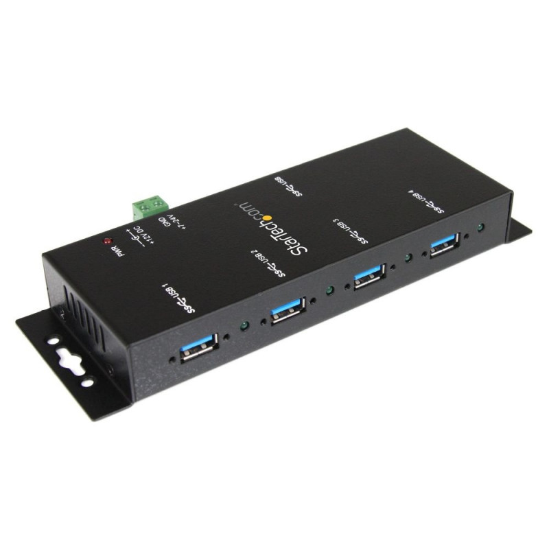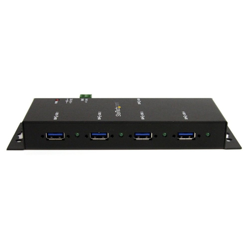 StarTech.com 4-pordiline USB 3.0 jaotur – 5 Gbps – Tööstuslik USB-A jaotur metallkorpuses ESD- ja ülepingekaitsega – Võimalik paigaldada DIN-liistule, seinale või lauale – TAA-NÕUETELE VASTAV – USB laiendusjaotur. Host-liides: USB 3.2 Gen 1 (3.1 Gen 1) Type-B, jaoturi liidesed: USB 3.2 Gen 1 (3.1 Gen 1) Type-A. Andmeedastuskiirus: 5000 Mbit/s, toote värvus: must, korpuse materjal: teras. Energiatarve (tavakasutuses): 36 W, väljundpinge: 12 V, väljundvool: 3 A. Toetatud Windowsi operatsioonisüsteemid: Windows 10 Education, Windows 10 Education x64, Windows 10 Enterprise, Windows 10 Enterprise x64, ...; toetatud Maci operatsioonisüsteemid: Mac OS X 10.4 Tiger, Mac OS X 10.5 Leopard, Mac OS X 10.6 Snow Leopard. Laius: 59,6 mm, sügavus: 152 mm, kõrgus: 24 mm.