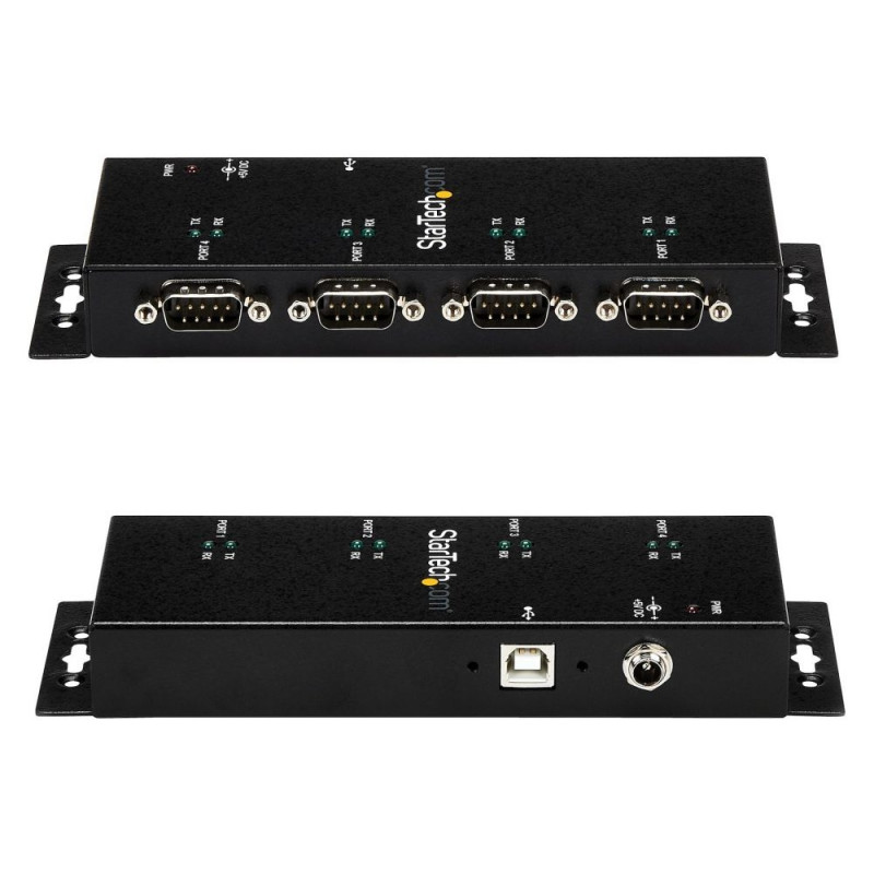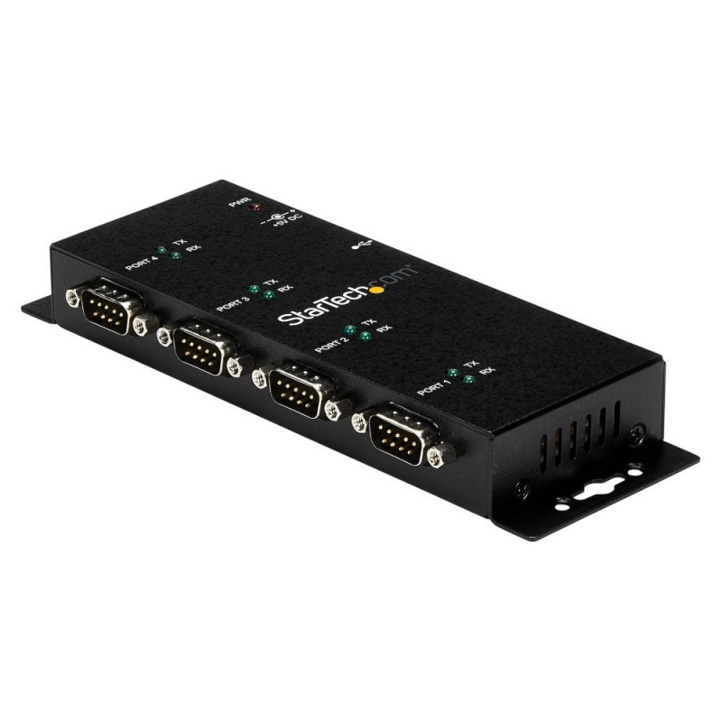 StarTech.com 4-pordiline USB-jada-RS232 adapteri jaotur – tööstuslik DIN-liistule/seinale paigaldatav. Host-liides: USB 2.0 Type-B, jaoturi liidesed: jada. Toote värv: must, korpuse materjal: teras, LED-indikaatorid: aktiivsus. Toiteallikas: USB, toitepistiku tüüp: tüüp M. Toetatud Windowsi operatsioonisüsteemid: Windows 10, Windows 10 Education, Windows 10 Education x64, Windows 10 Enterprise, Windows 10..., Toetatud Maci operatsioonisüsteemid: Mac OS X 10.10 Yosemite, Mac OS X 10.11 El Capitan, Mac OS X 10.12 Sierra, Mac OS X 10.13 High..., Toetatud serveri operatsioonisüsteemid: Windows Server 2003, Windows Server 2008 R2, Windows Server 2012, Windows Server 2012 R2, Windows.... Laius: 59 mm, sügavus: 1788 mm, kõrgus: 23 mm